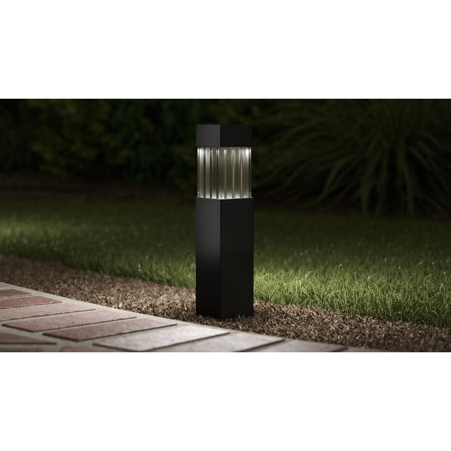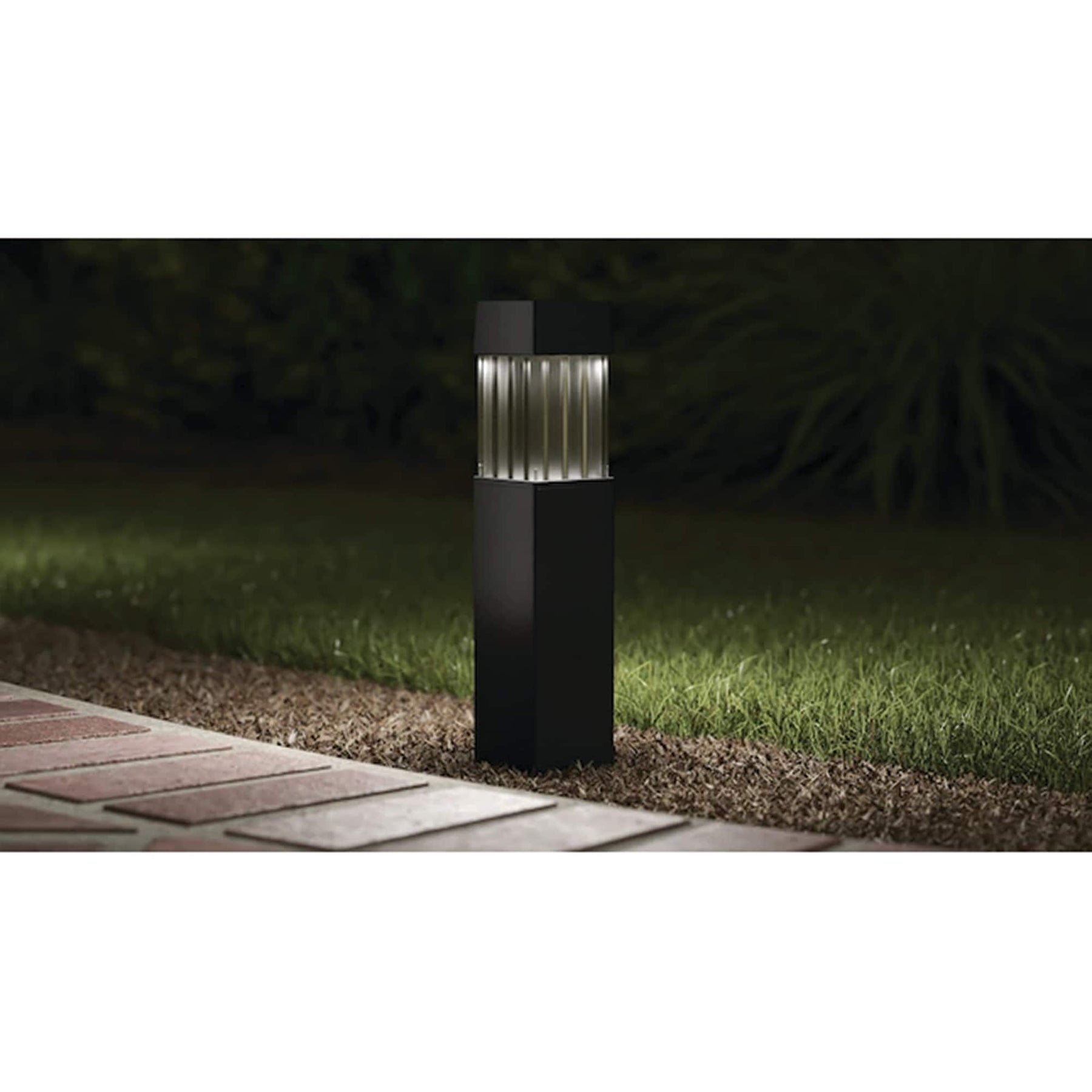 This slim black bollard adds a refined, architectural note to your landscape, casting a soft ribbon of warm light that guides the eye. I love the ribbed clear lens—it creates elegant striations that feel tailored and sophisticated. Line several along a walkway or nestle them among ornamental grasses for a quietly luxurious scene. It’s an effortless way to elevate outdoor moments with considered, modern warmth.