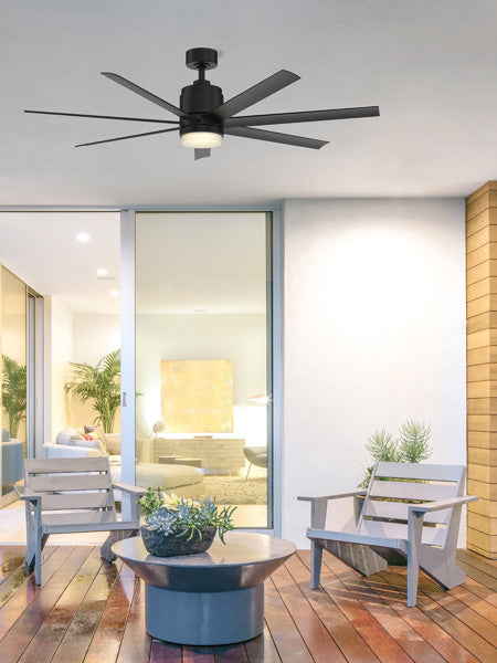 Blitz’s seven streamlined blades radiate with architectural confidence, turning a simple ceiling plane into a dynamic focal point. The integrated LED lens offers a soft, tailored glow that frames the form beautifully. Style it over a contemporary patio lounge or a minimalist great room to punctuate the space with motion and light. It’s an effortless essential for refined, modern living.