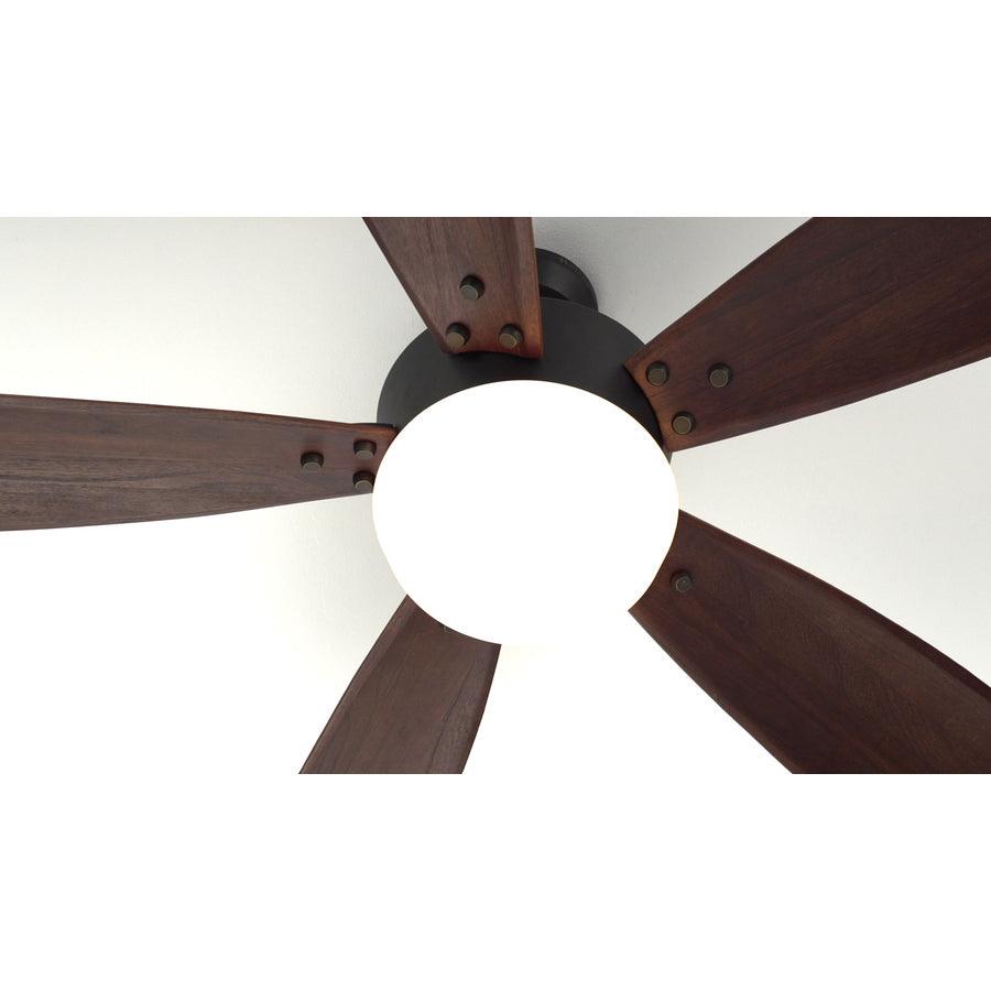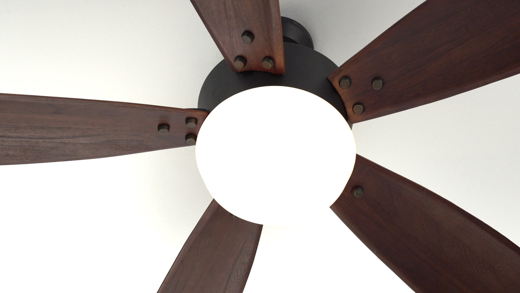 Saratoga’s hand-carved auburn blades feel artisanal and architectural, transforming a vaulted great room with sculptural movement. The oil-rubbed bronze body and white linen glass create a soft, flattering glow that anchors the space with warmth. Style it above a cozy seating vignette with layered textures—linen, leather, and a vintage rug—to echo its refined traditional lines. It’s an essential finishing touch for luxurious, livable comfort.