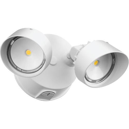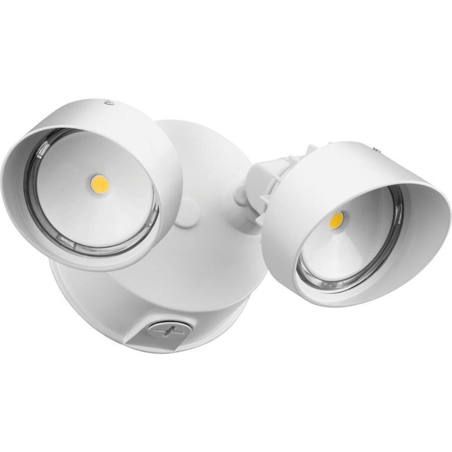 Outdoor White 2 round head security light offers 4000K light with a hardwired on/off capability