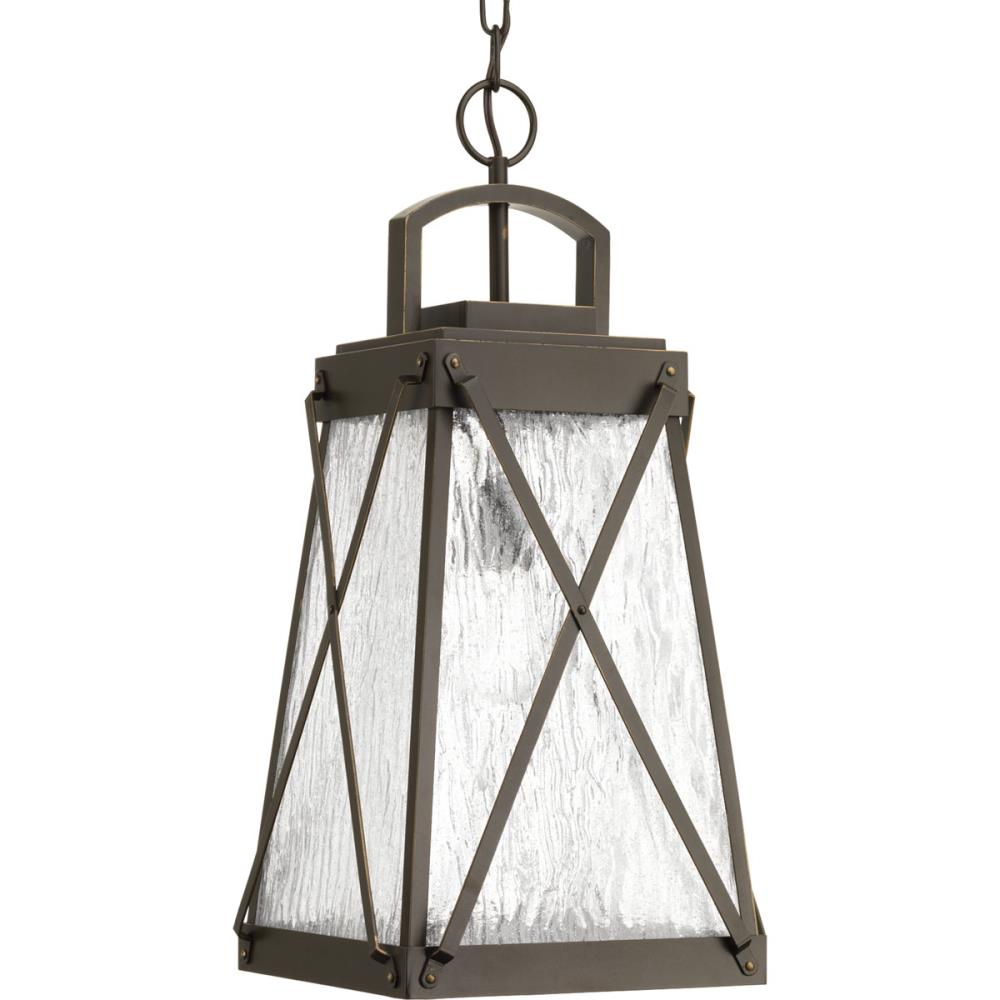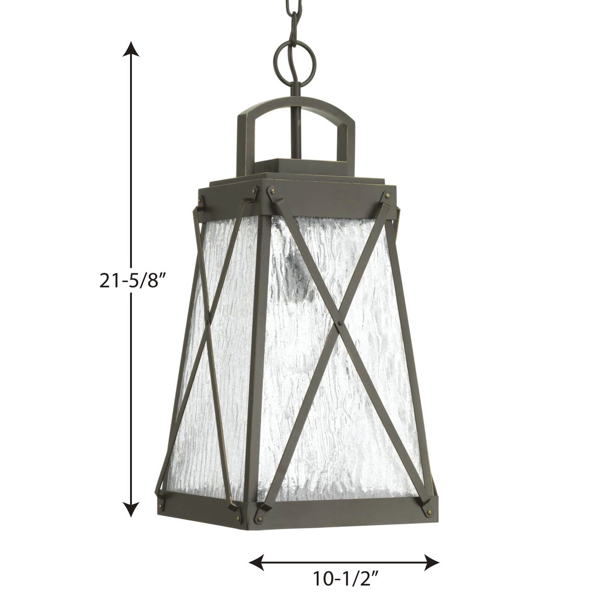 Progress Lighting Creighton Antique Bronze Traditional Clear Water Glass Lantern Pendant Light, 21-5/8 in. H x 10-1/2 in. W