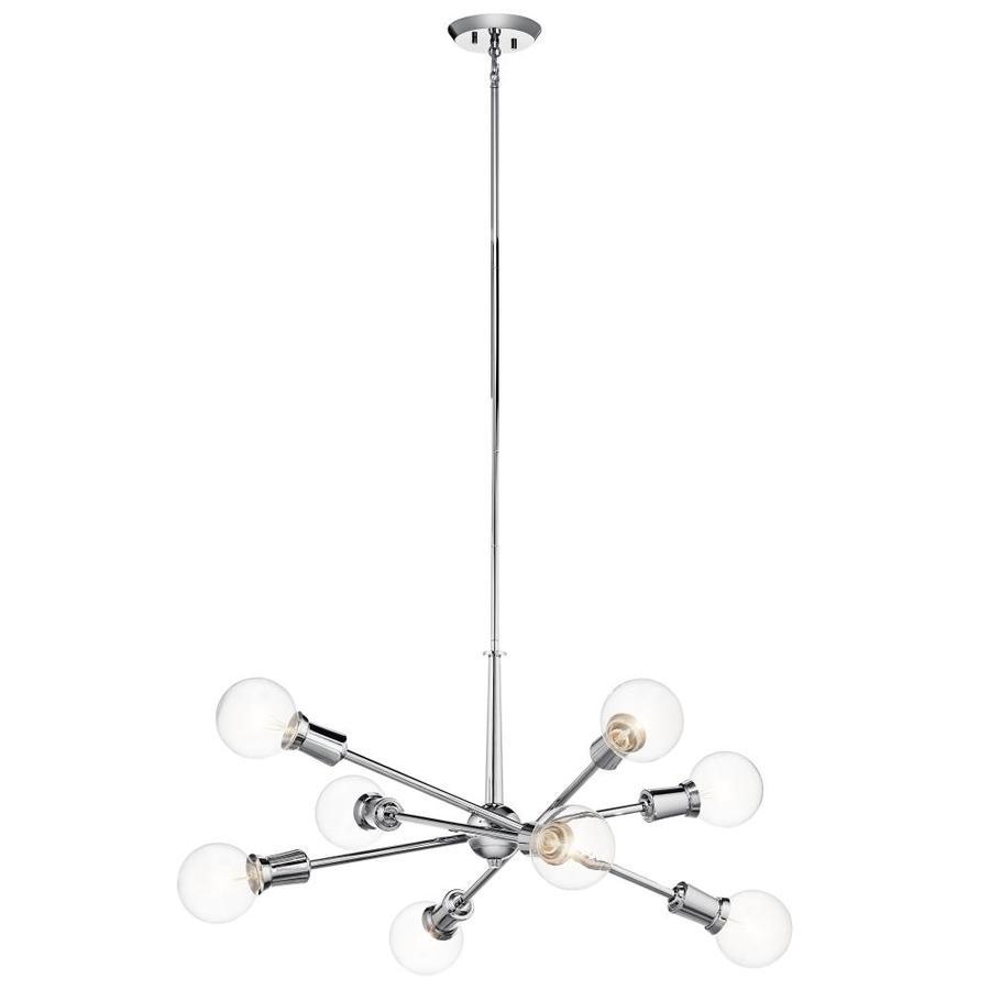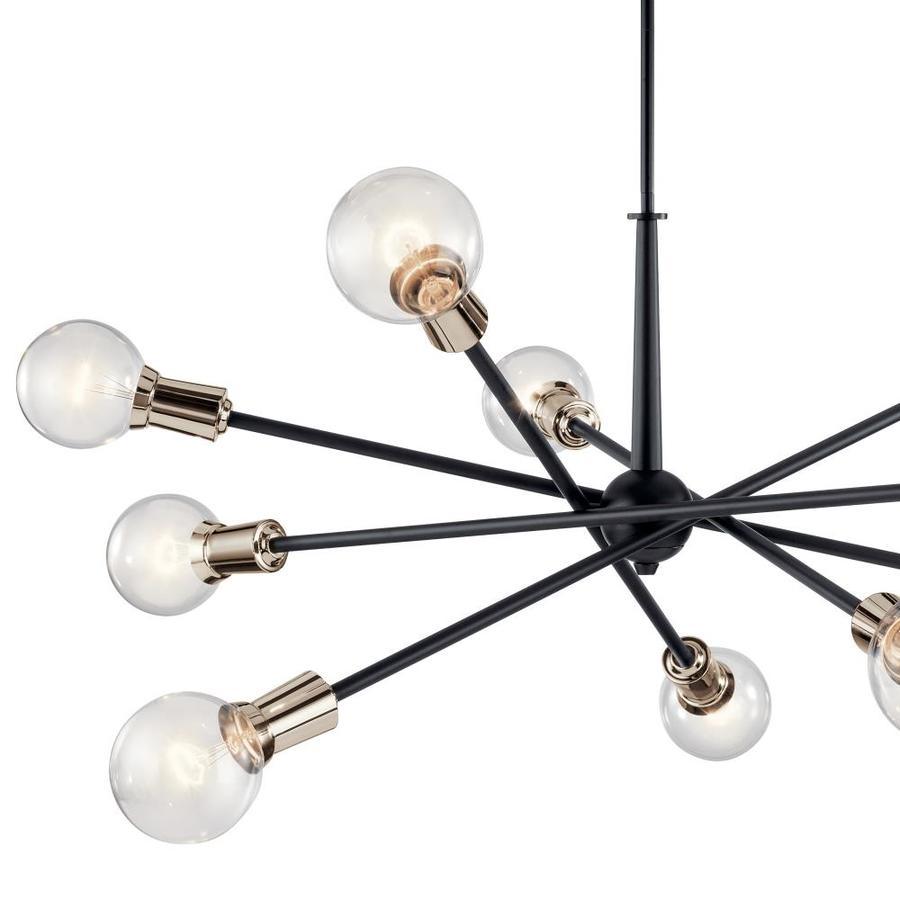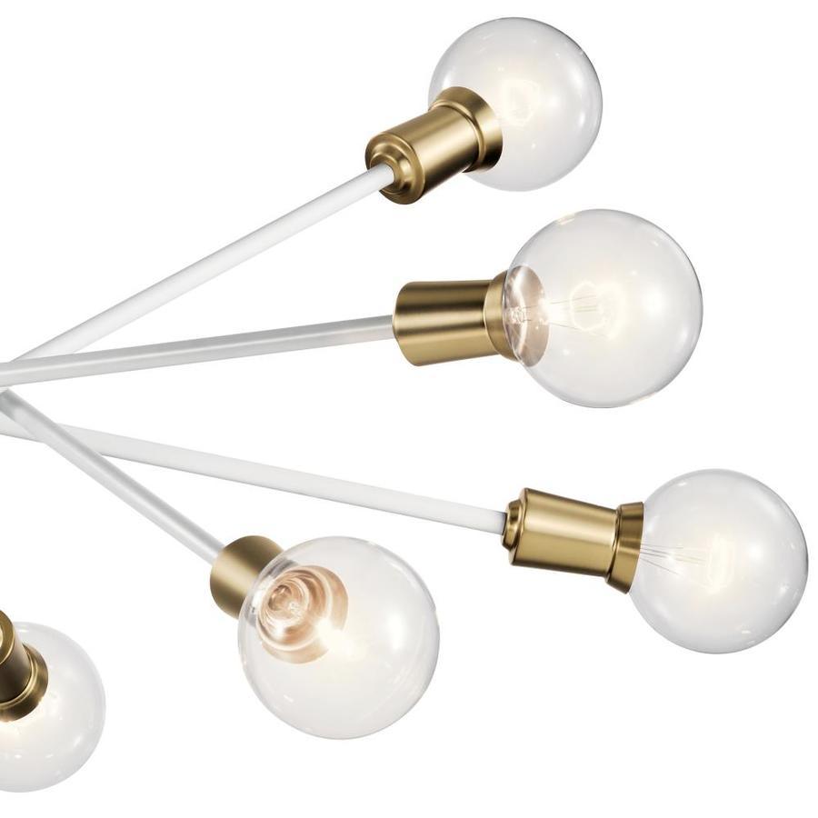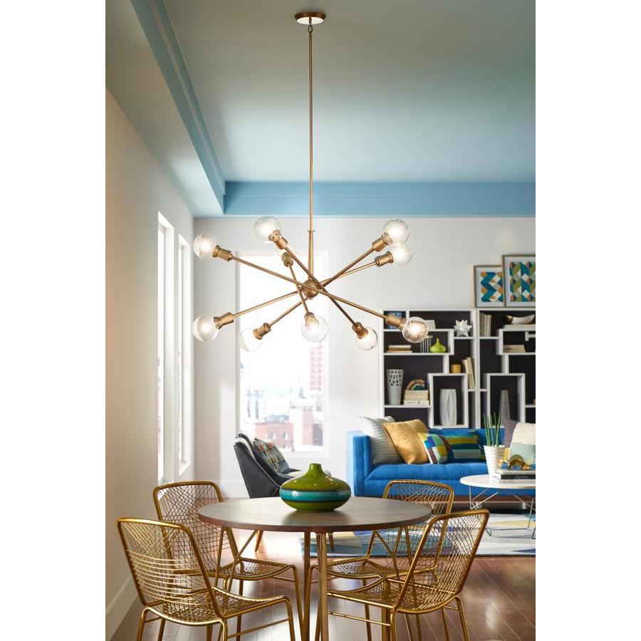 A striking mid-century ‘sputnik’ chandelier with adjustable arms, the Kichler Armstrong brings bold modern style in a warm Natural Brass finish. Ten medium-base sockets deliver generous illumination, ideal for dining rooms, living spaces, or entryways.