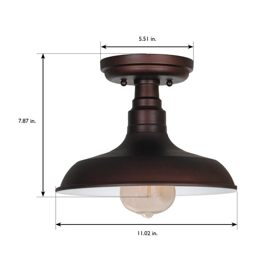 Ideal for bedrooms, hallways, closets, foyers, and more, this rustic industrial ceiling light has a rich coffee bronze finish with a bell-shaped metal shade 7.87 inches H x 11 inches W Uses (1) 60 watt medium base bulb or LED equivalent (not included) Designed to be dimmable when used with a compatible dimmer switch (not included), allowing you to adjust the preferred light brightness Listed for use in dry locations 10-Year limited warranty