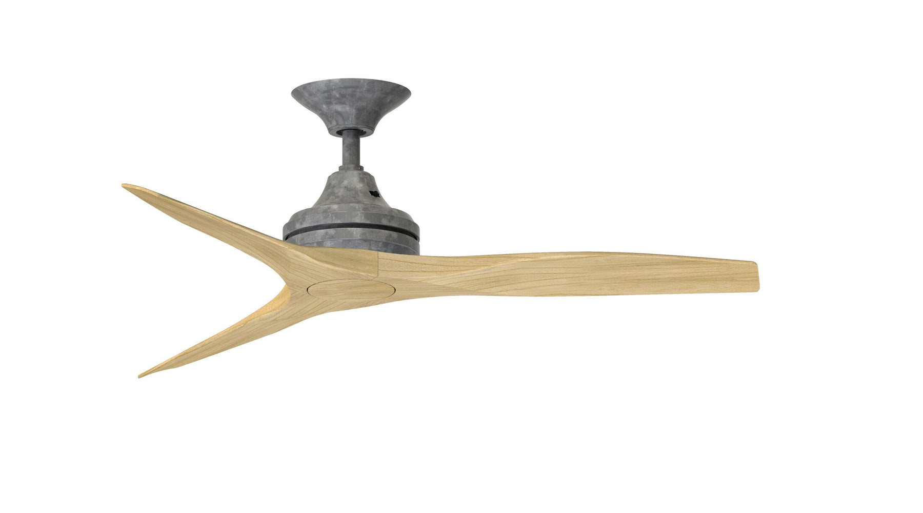 Galvanized finish ceiling fan from the Spitfire collection features 3 natural button wood blades
