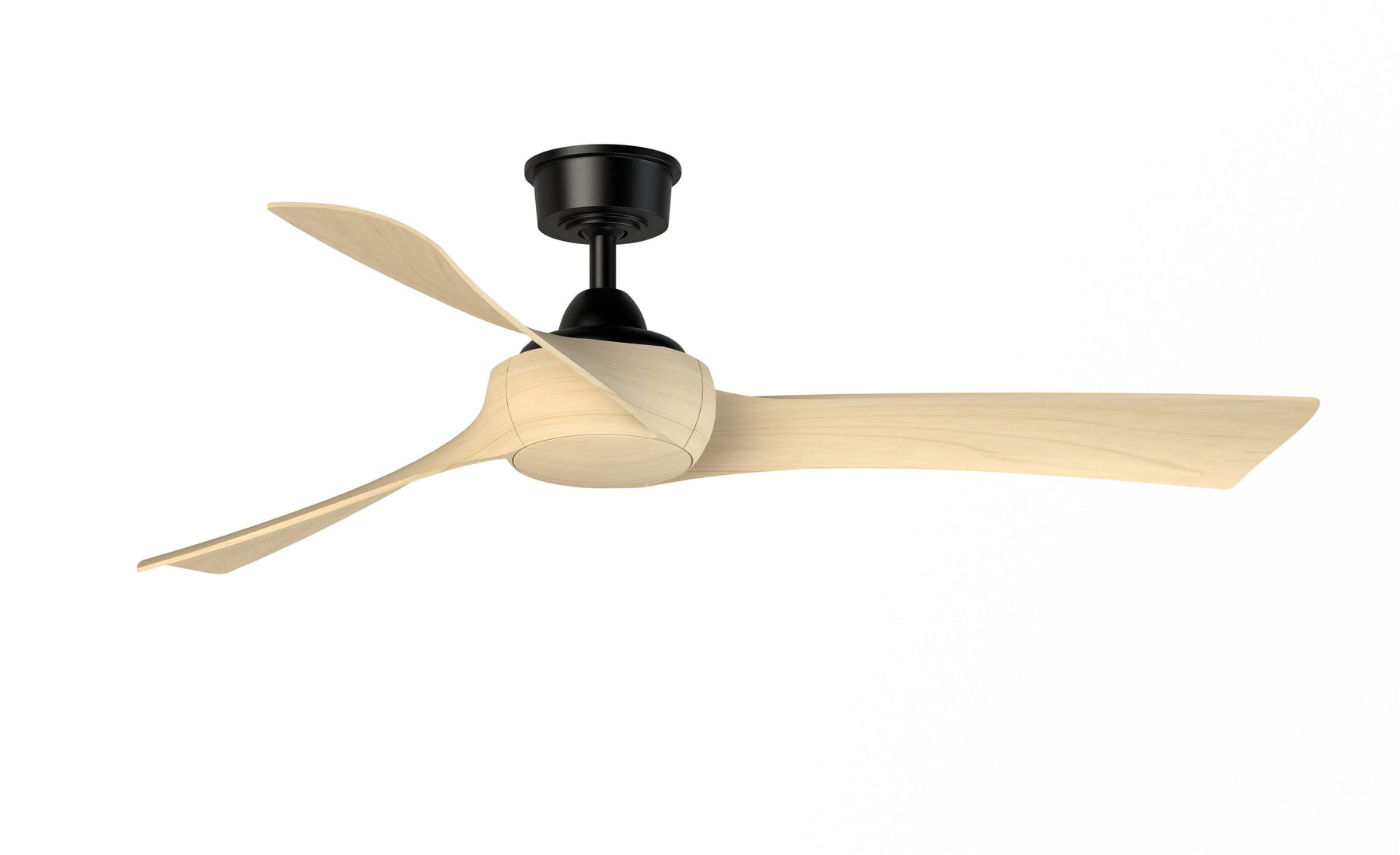 Black finish ceiling fan from the Wrap Custom collection features 3 natural finish composite blades