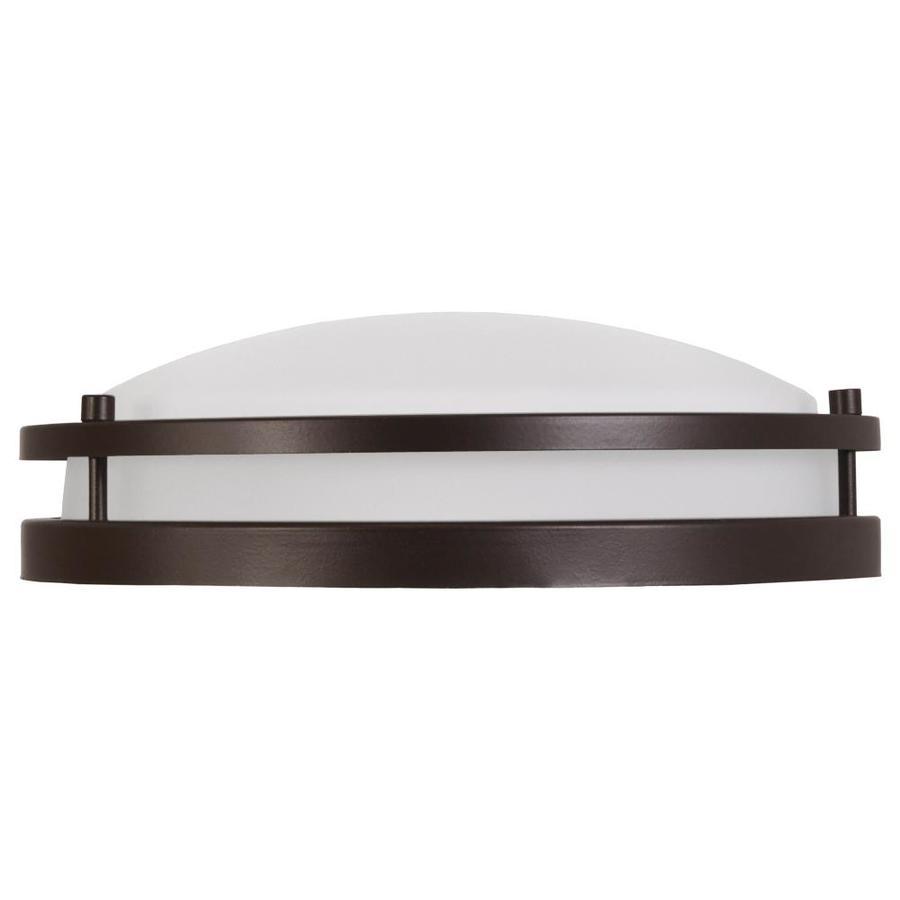14-In W ceiling flush mount light from the Jordan collection Light bronze finish complements many decor styles Opalescent glass shade provides a cool glow Includes 20.73 watt integrated LED with 3000K color temperature for soft white light Compatible with most Triac wall dimmers, so you can create your desired ambiance ETL listed for use in damp locations, so you can install in your bathroom or screened porch Energy Star certified product to help you save money on utility bills without sacrificing performance, style or comfort Smooth lighting technology limits hot spots and reduces glare for even light distribution 10-Year limited warranty gives you peace of mind