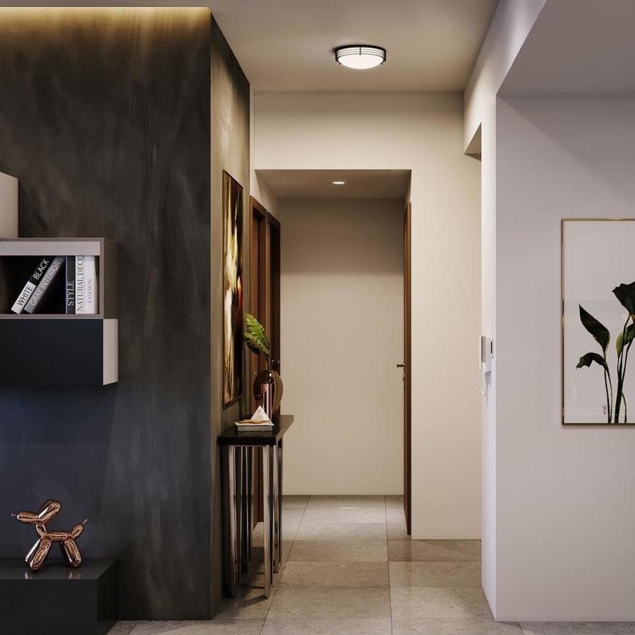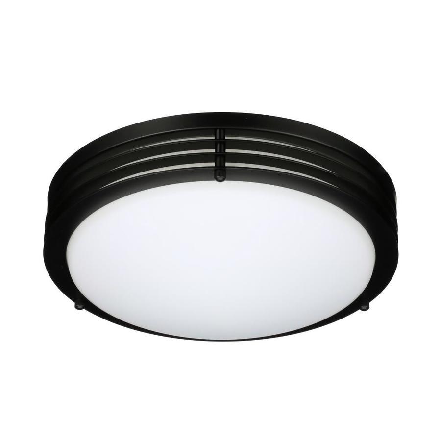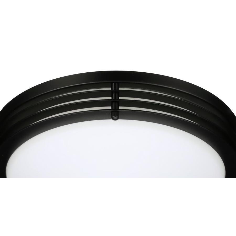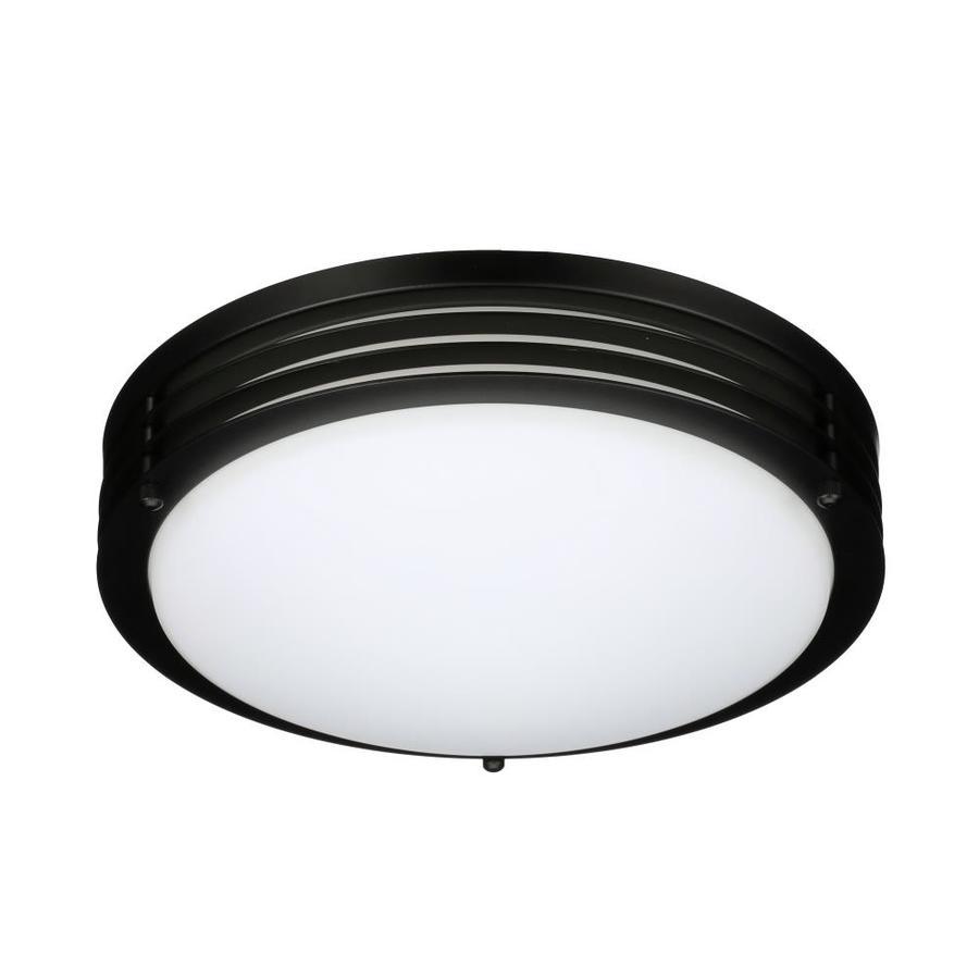 11-In W ceiling flush mount light from the majestic collection Matte black finish complements many decor styles Opalescent glass shade provides a cool glow Includes 16 watt integrated LED with 3000K color temperature for bright white light Compatible with most Triac wall dimmers, so you can create your desired ambiance ETL listed for use in damp locations, so you can install in your bathroom or screened porch Energy Star certified product to help you save money on utility bills without sacrificing performance, style or comfort Smooth lighting technology limits hot spots and reduces glare for even light distribution 10-Year limited warranty gives you peace of mind