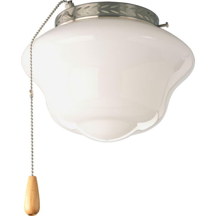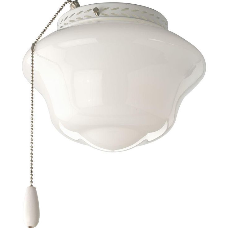 This light kit features a nostalgic schoolhouse, opal glass diffuser that's ideal for lighting in a bedroom. This fan light kit includes threaded adapter for connection to most ceiling fans that accept an accessory light. Convenient chain pull operation.