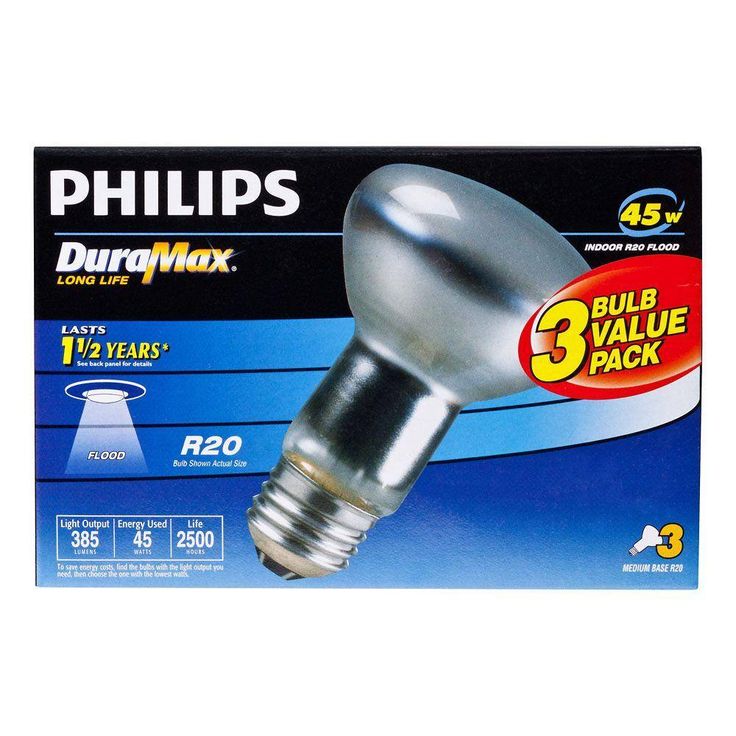 The Philips DuraMax 45-Watt Indoor Spot Light Bulb (3-Pack) are designed for a variety of your home or business's indoor lighting applications. These spot lights can be used in recessed and track lighting fixtures. You can also use them as design tools to accent your architecture and art. These bulbs can output up to 385 Lumens using 45-Watt.