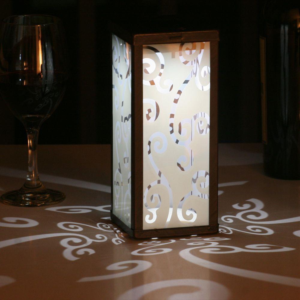 This elegant solar lantern makes an eye catching accent piece for any outdoor deck or patio area. Powered by a discreet integral solar panel, it charges by day and automatically illuminates at night. Once illuminated it casts scroll patterns through the frosted glass onto whatever surface it sits on. It can also be staked into the ground in your garden. Antique finish, rechargeable Ni-Mh AA battery included.