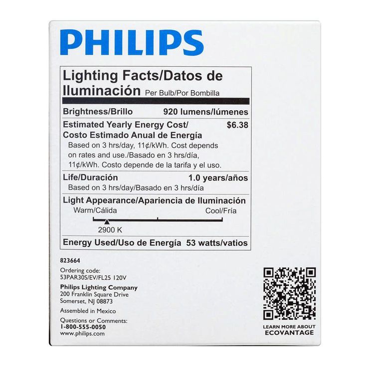 • Energy used: 53-Watt (equivalent to a 75-Watt standard incandescent light bulb)