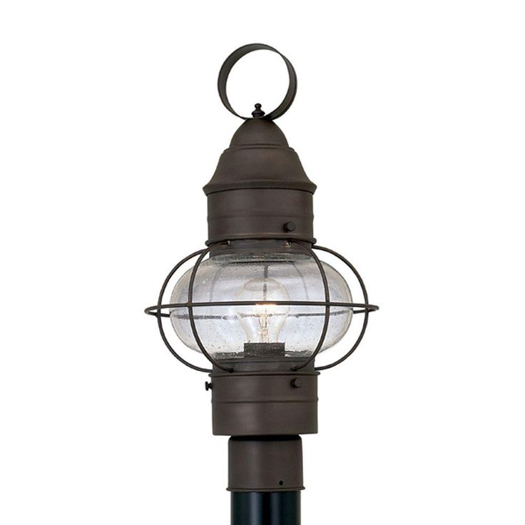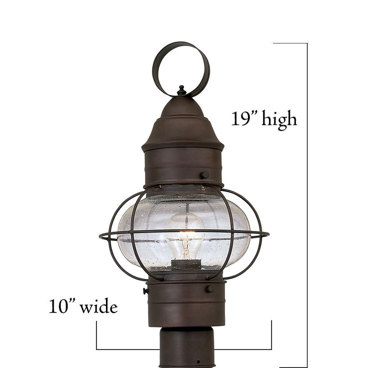 Cork outdoor post lanterns feature a simple, classic design with a unique style that complements the exterior decor of any home. The clear seedy glass provides a rustic look from the fixture and a warm glow from the light. The rustique finish is treated to prevent pitting, tarnishing, corrosion, and discoloration. The sturdy, weather resistant steel construction and waterproof seal protect the lantern from harsh outdoor elements to ensure the long life of the fixture. These outdoor post lanterns install easily and deliver welcoming, safe and reliable exterior lighting.