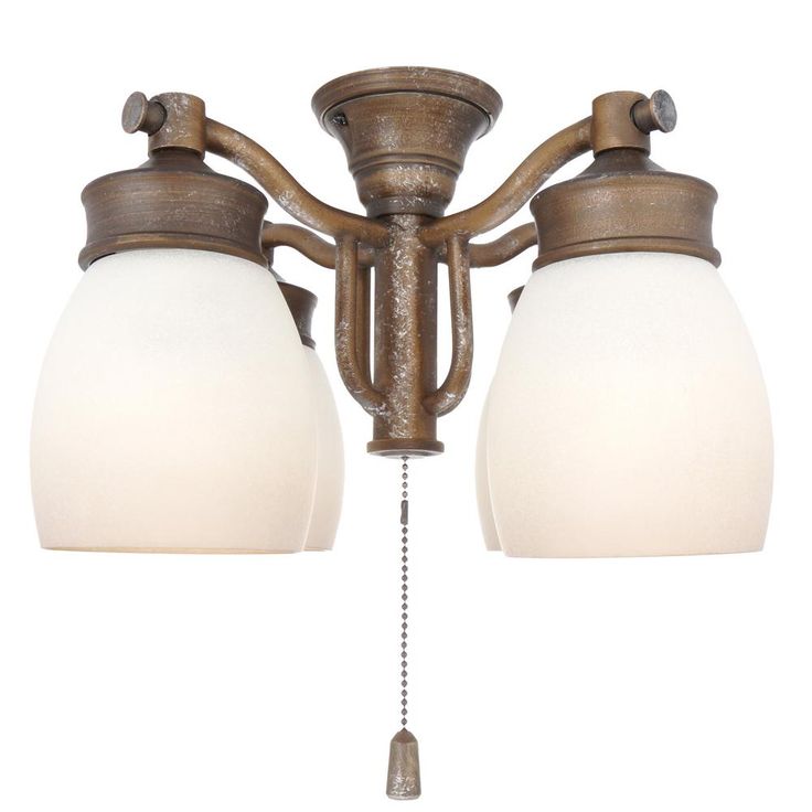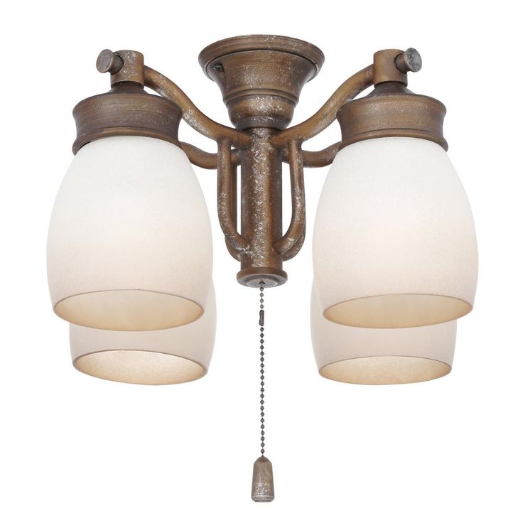 4-Light Aged Bronze Ceiling Fan Fixture with Tea Stain Glass