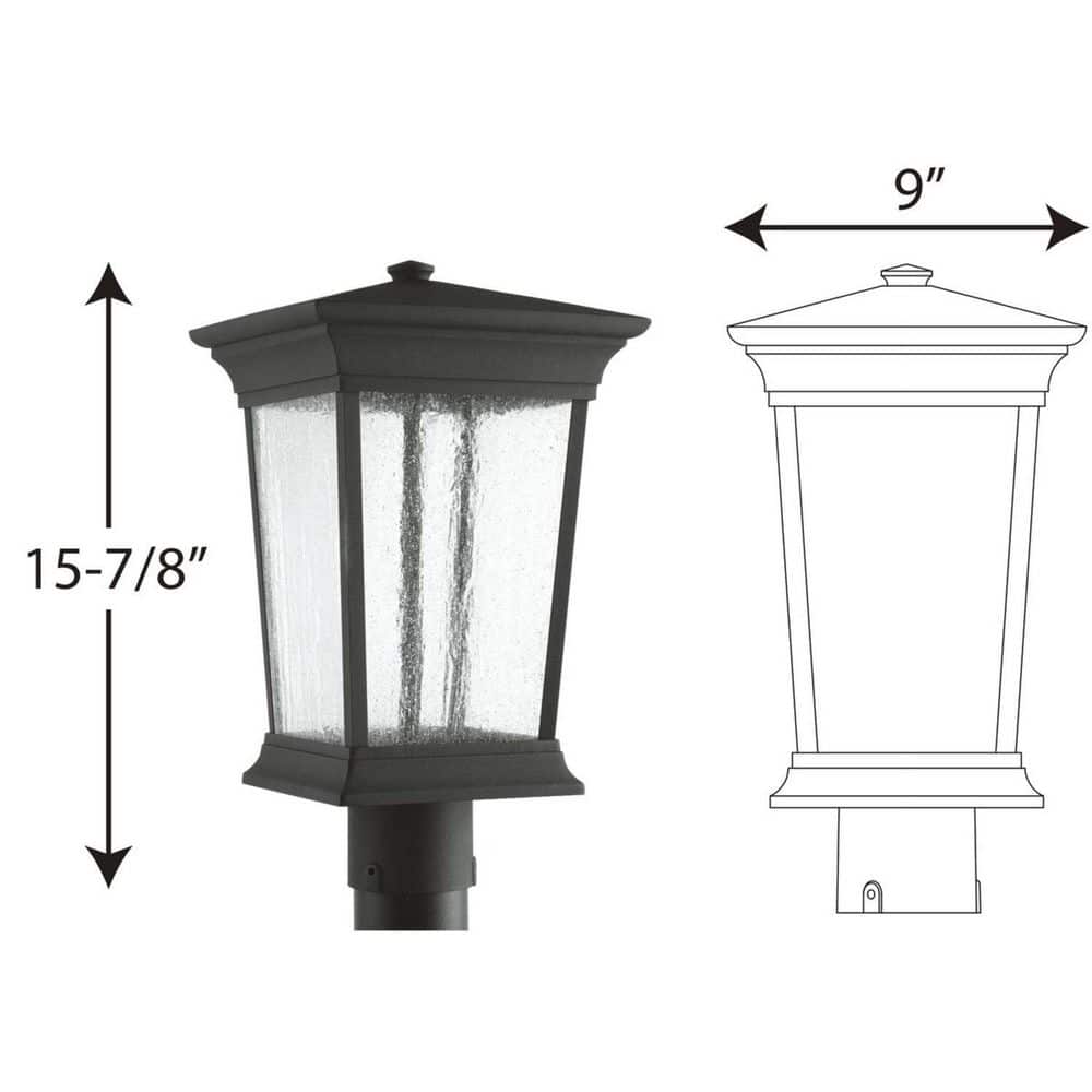Progress Lighting Arrive Collection 1-Light Textured Black LED Outdoor Post Lantern, 9 in. x 15-7/8 in.