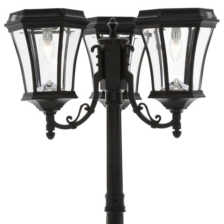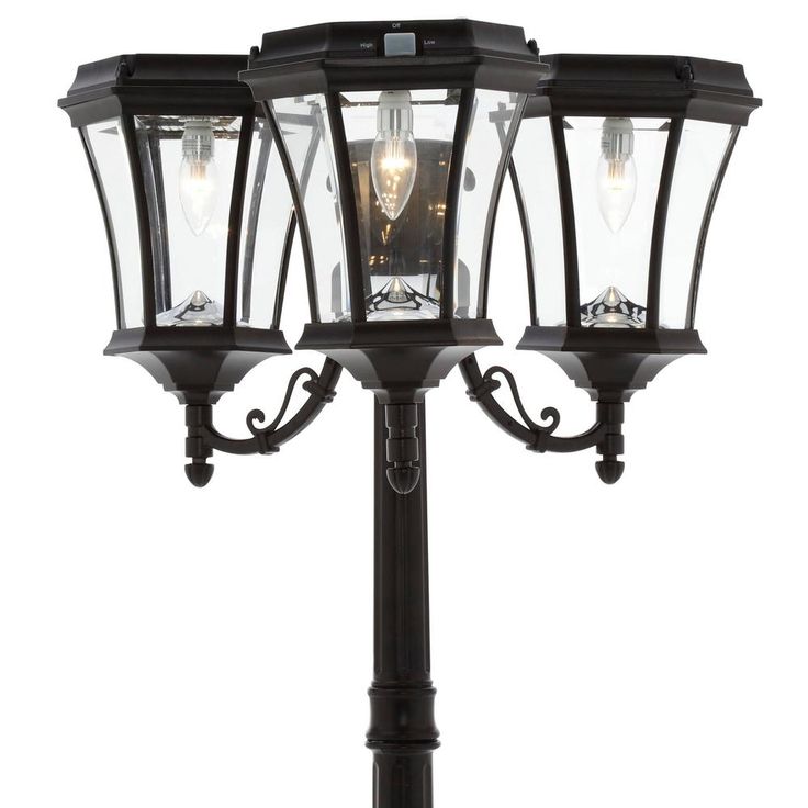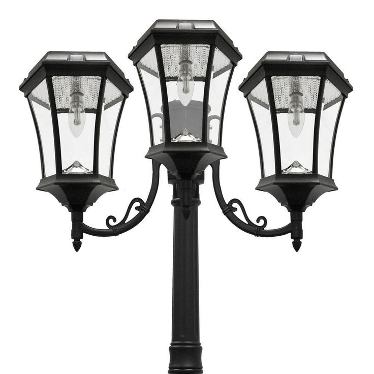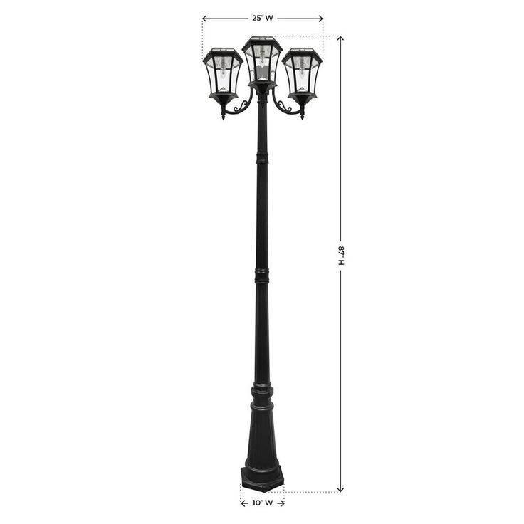 The Gama Sonic Victorian Bulb GS-94B-T Triple lamp heads is a rust-resistant, cast aluminum, solar lantern, which features an attractive 19th-century lamp design and has now been integrated with our latest revolutionary technology: a patented outdoor Solar LED Light Bulb providing 150-Lumens on a full charge. Standing 90 in. tall with a powder-coated black finish and beveled glass pane, the Victorian GS-94B-T solar lamp post will add style and distinction wherever it's installed. Easy to install and providing ample light to illuminate your pathways, this solar light is the perfect energy and money-saving replacement for electric or gas-powered outdoor lighting. Key Features and Benefits: 3-light Lamp Post No Electrical Wiring for Installation Fully solar powered lights Rust Resistant Solar Post Light New Patent Pending LED Solar Bulb Technology: Each Bulb Provides 150-Lumens of powerful light on a full charge. (450-Lumens total) Economy mode switch extends nightly light duration Patented cone reflector enhances the glow and multidirectional light dispersal Integrated Lithium Ion battery pack lasts for approximately 3 years (roughly 1000 charges) and can be replaced for additional 3 years of operation. Please note that it is highly recommended to secure this Gama Sonic lamp post base into a solid surface such as concrete or wooden patio (bolts included). WARNING: Gama Sonic solar light bulbs are not to be used in electrical sockets or in other company’s solar products.