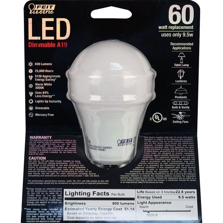 • Energy used: 9.5-Watt (equivalent to a 60W standard incandescent light bulb)