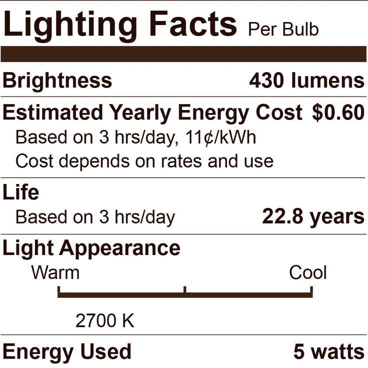 - Estimated yearly energy cost: $0.59 (based on 3 hours/day, 11¢/kWh, costs depend on rates and use)
