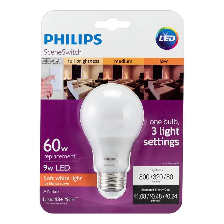 Philips 60-Watt Equivalent A19 SceneSwitch LED Light Bulb Soft White (2700K)/Amber (2500K)/ Warm Glow (2200K)