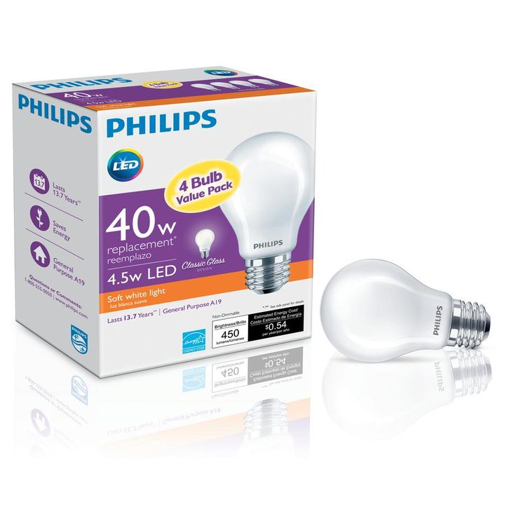 Philips 40-Watt Equivalent A19 Non-Dimmable Energy Saving Frosted Classic Glass LED Light Bulb Soft White (2700K) (4-Pack)