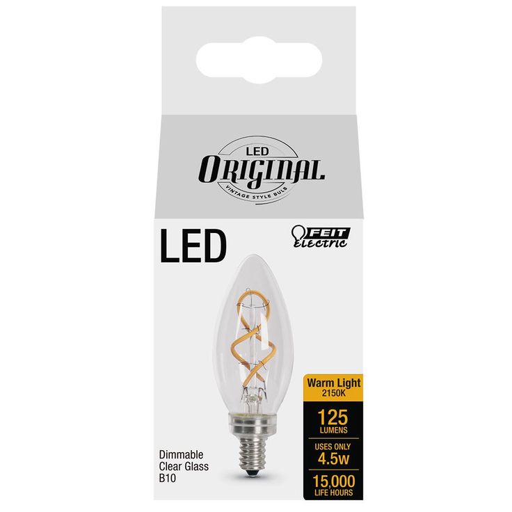 Feit Electric 25-Watt Equivalent B10 Dimmable Candelabra Clear Glass Vintage LED Light Bulb with Spiral Filament Warm White (1-Bulb)