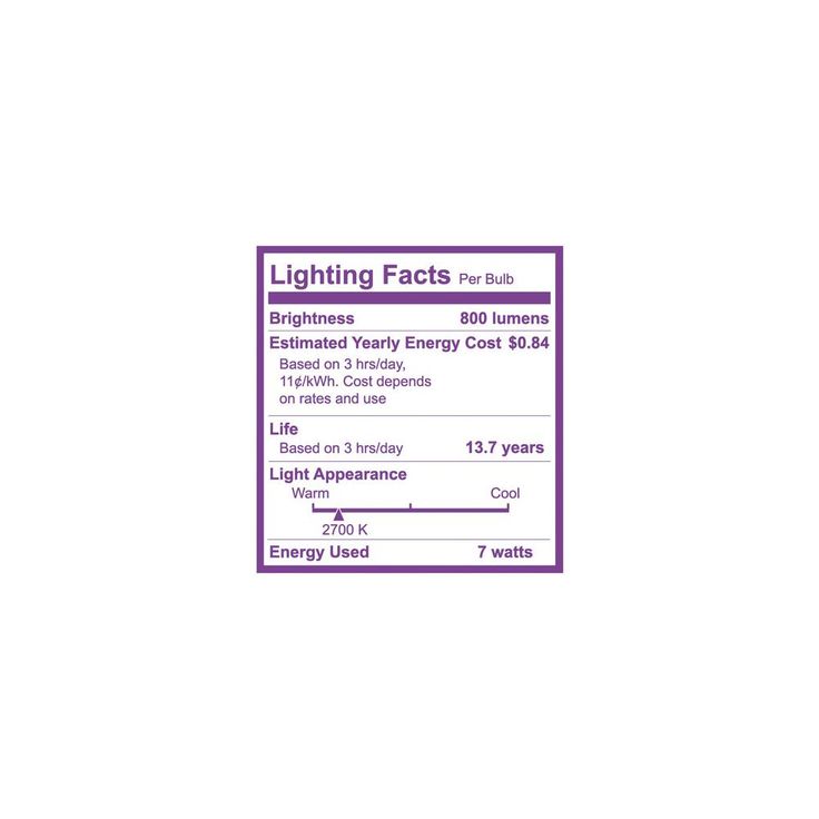 • Estimated yearly energy cost: $0.84 (based on 3-hours/day, 11¢/kWh, cost depend on rates and use)