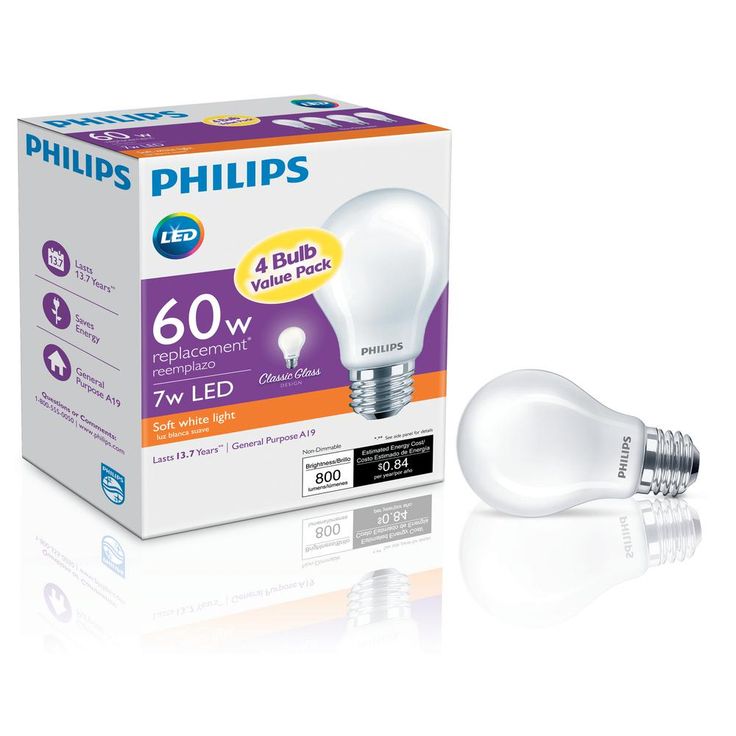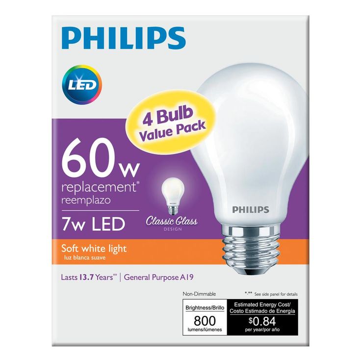 Philips 60-Watt Equivalent A19 Non-Dimmable Energy Saving Frosted Classic Glass LED Light Bulb Soft White (2700K) (4-Pack)