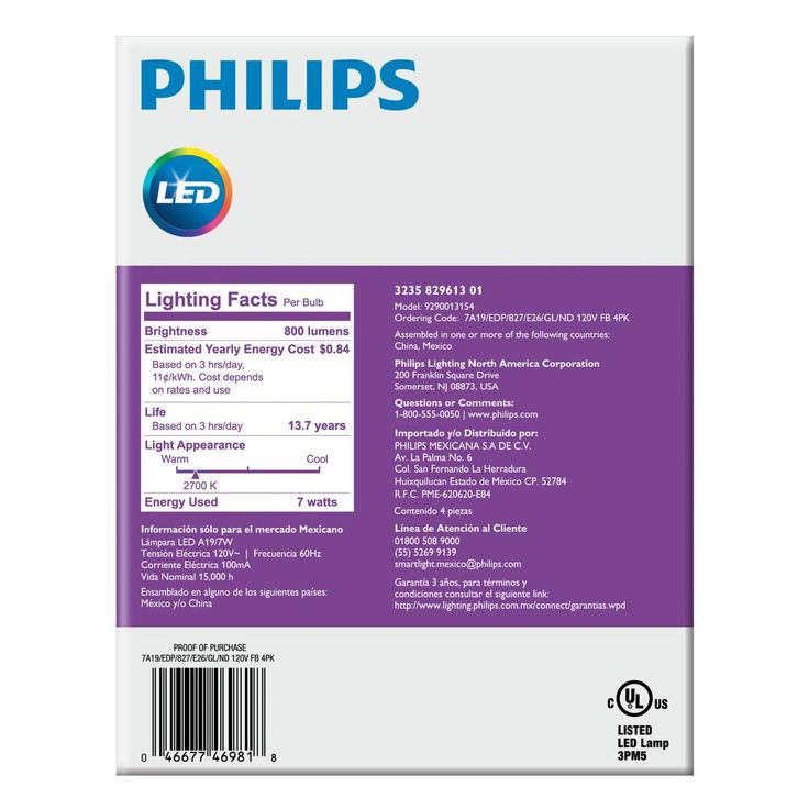 • Energy used: 7-Watt (equivalent to a 60W standard incandescent light bulb)