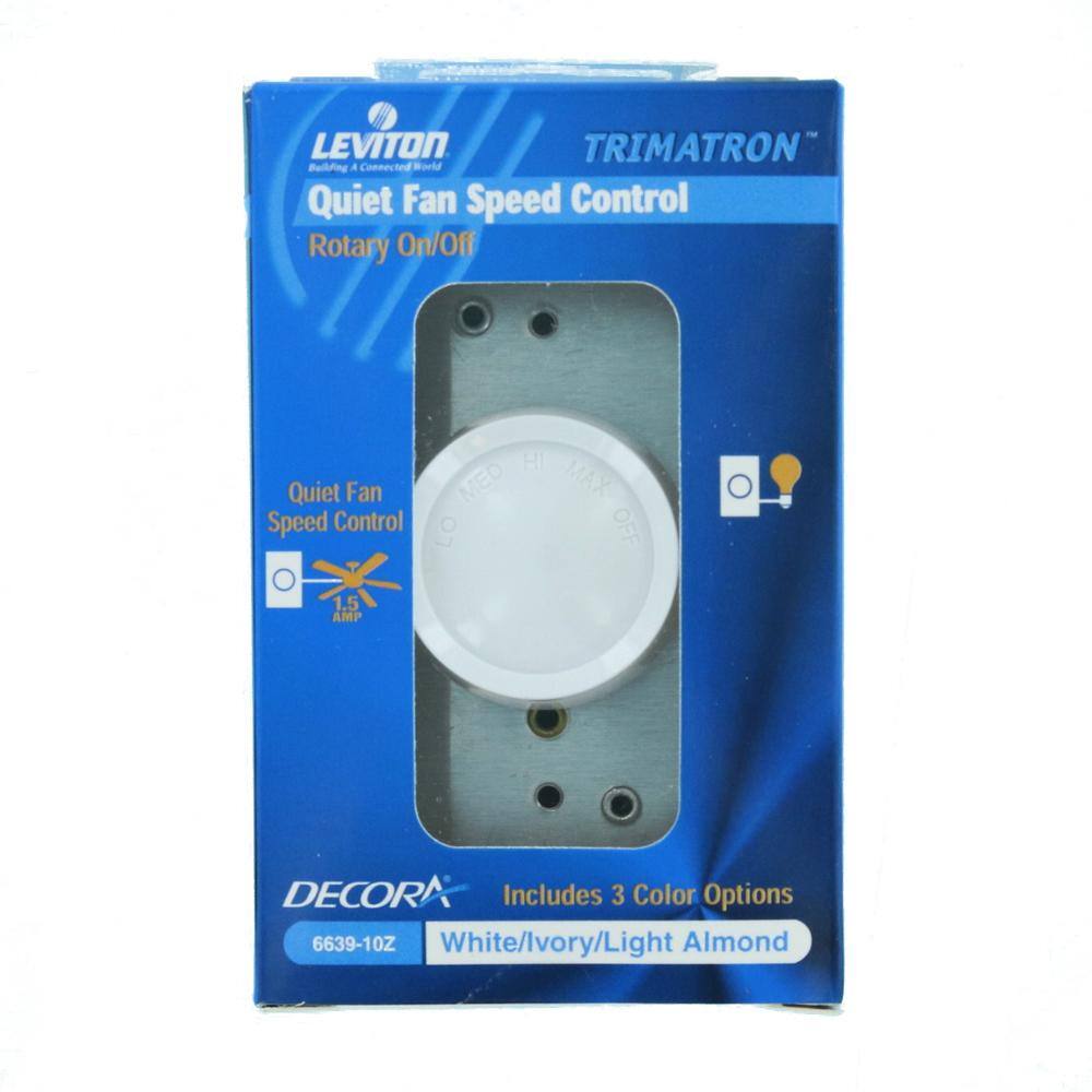 Leviton 1.5 Amp Trimatron Single-Pole Step-Control Rotary Fan Speed Control, White with Ivory and Light Almond Knobs