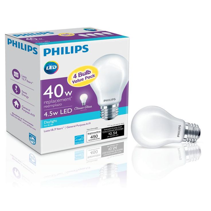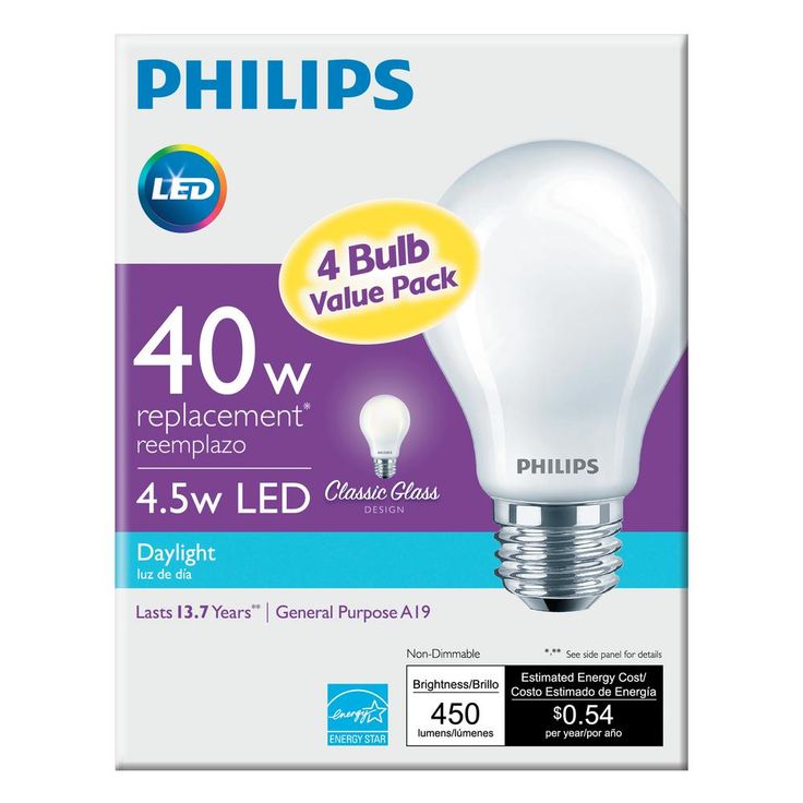 Philips 40-Watt Equivalent A19 Non-Dimmable Enregy Saving Frosted Classic Glass LED Light Bulb Daylight (5000K) (8-Pack)