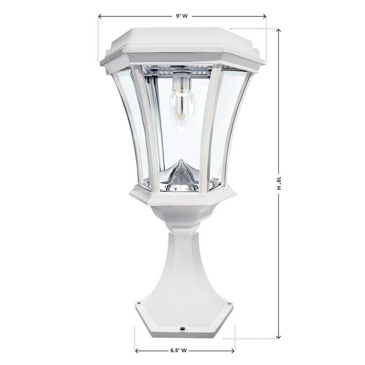The Gama Sonic single solar lamp Victorian Bulb from our Victorian Bulb series GS-94B-FPW-WHITE is a rust-resistant, cast aluminum, solar lantern, which features an attractive 19th-century lamp design and has now been integrated with our latest revolutionary technology: a patented outdoor Solar LED Light Bulb providing 150-Lumens on a full charge. Standing 15 in. tall with a powder-coated white finish and beveled glass panes, this solar lamp will add style and distinction wherever it's installed. Easy to install and providing ample light to illuminate your pathways, this solar light is the perfect energy and money-saving replacement for electric or gas-powered outdoor lighting. Key Features and Benefits: No Electrical Wiring for Installation. Fully solar powered lights. Rust Resistant Solar Light. New Patent Pending LED Solar Bulb Technology: This outdoor LED Solar Bulb Provides 150-Lumens of powerful light on a full charge. Integrated Lithium Ion battery pack lasts for approximately 3 years (roughly 1000 charges) and can be replaced for additional 3 years of operation. At Gama Sonic, our goal is to build the world's best solar lights by providing long lasting light fixtures that are simply built to last. WARNING: Gama Sonic solar light bulbs are not to be used in electrical sockets or in other company's solar products.