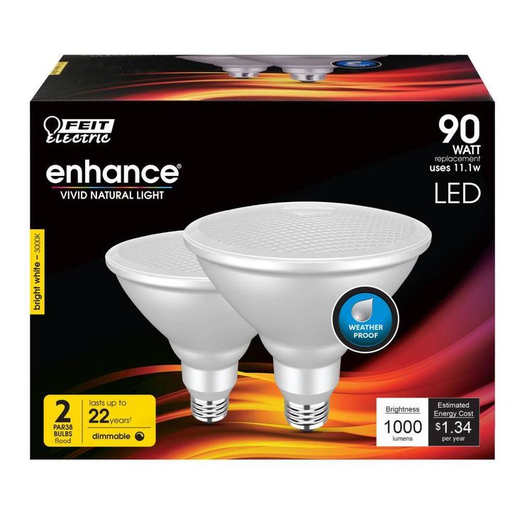 This cold resistant 14-Watt Dimmable LED is a direct replacement for a 90-Watt PAR38 light bulb. It turns on instantly in sub-zero temperatures, has an average life of 25,000 hours and is mercury free. This PAR38 LED replacement is great for any of your recessed lighting and outdoor security lighting needs and lasts up to 14 times longer than your standard incandescent replacement while using up to 84% less energy. Save both installation time and money with Feit Electric LED bulbs.