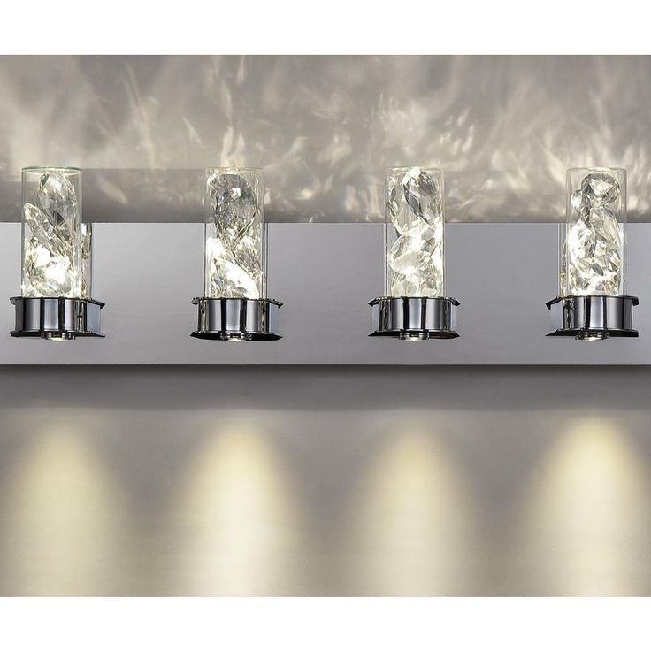 Introducing the York Collection. Features crystal teardrops encased in clear glass cylinders on chrome LED pedestals. The upward facing lights reflect off the glittering crystals to create a stunning visual effect. While the down lights provide ample additional light to assist in properly illuminating your space. Add this bath bar to your home or office to create a luxurious look. Only available from Eurofase.