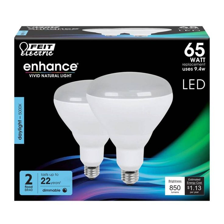 The Feit Electric LED Enhance product line features our highest quality energy efficient light. This bright daylight BR40 reflector LED light bulb produces a similar light output while using less energy than a standard 65-Watt incandescent light bulb. This high performance bulb also has a high (CRI) of 90+ so colors appear more realistic and vibrant. Get instant on to full brightness with relatively cool running performance. These Feit Electric BR40 bulbs have an average life of 25,000-hour / 22.8 years are RoHS compliant and 100% mercury free. Choose a dependable ENERGY STAR approved bulb for general purpose residential or commercial applications. Suitable for enclosed fixtures or outdoor use.
