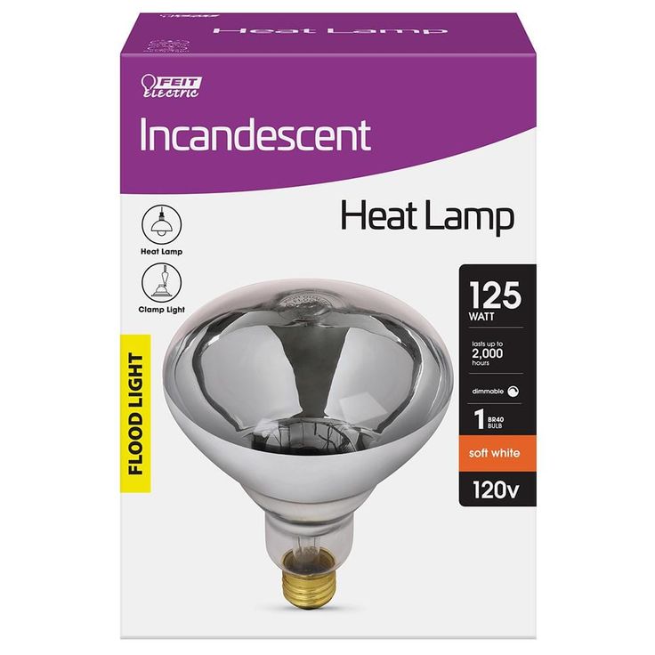 This Feit Electric 125R40/1 125-Watt incandescent dimmable flood BR40 reflector heat lamp generates more warmth than a standard incandescent light. Heat lamps are commonly found in restaurants to prevent freshly prepared, hot dishes from cooling down before being delivered to the customer. Another practical use is in bathrooms or for animals to keep them comfortable even during Winter months. Get a dependable Feit Electric specialty bulb for all your general household and business needs.
