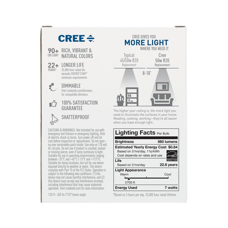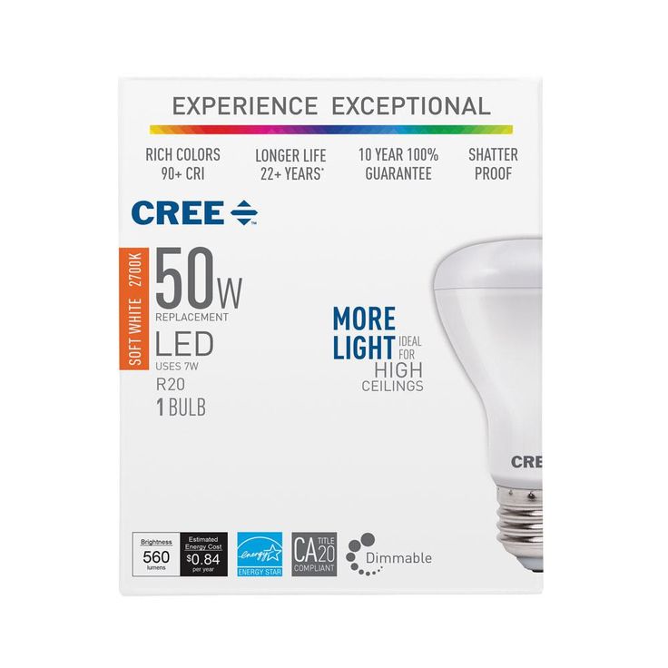 Cree 50W Equivalent Soft White (2700K) R20 Dimmable Exceptional Light Quality LED Light Bulb