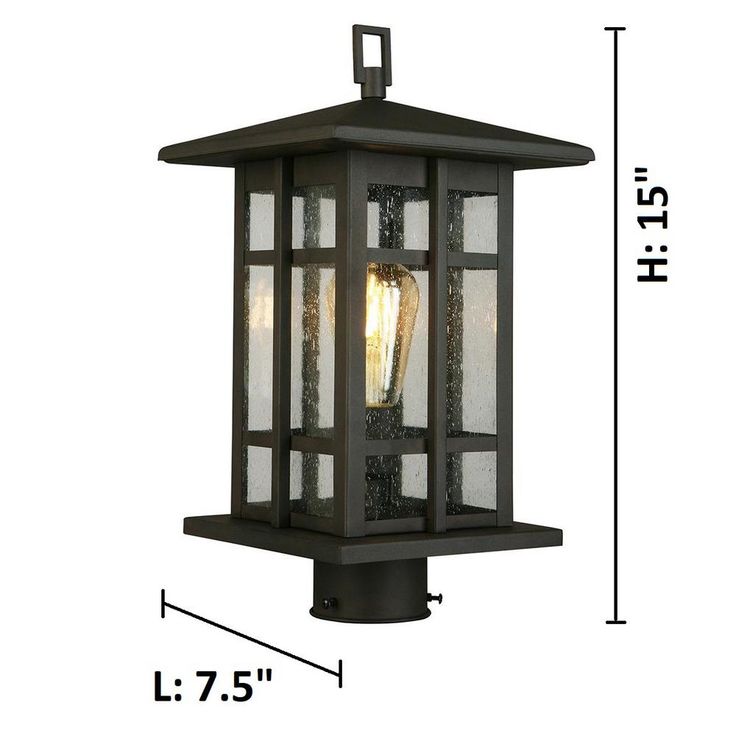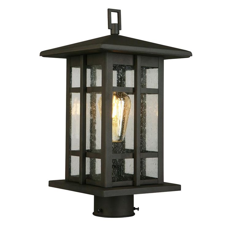 Arlington Creek 7.5 in. W x 15 in. H 1-Light Matte Bronze Outdoor Post Light with Clear Seeded Glass