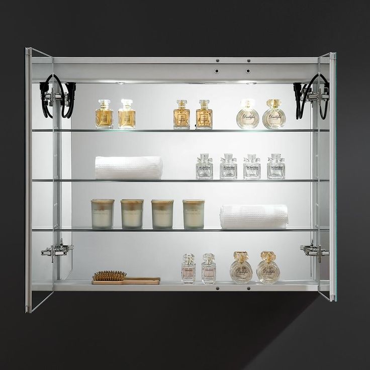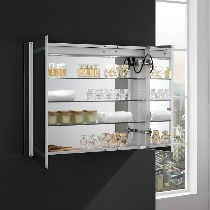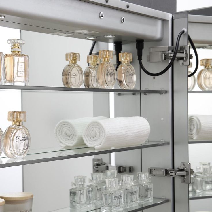 Features Adjustable Hinges,Adjustable Shelves,Fog Free,Glass Panel Door(s),Mirrored Door,Recessed,With Electrical Outlet