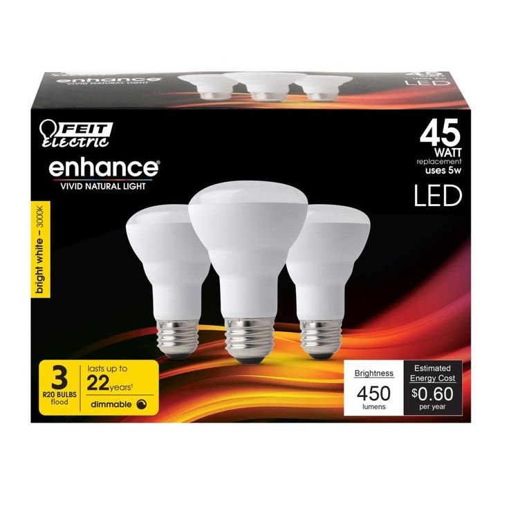 The Feit Electric LED Enhance product line features our highest quality energy efficient light. This bright white R20 dimmable reflector LED light bulb with an E26 medium base produces a similar light output while using less energy than a standard 45-Watt incandescent light bulb. This high performance bulb also has a high (CRI) of 90+ so colors appear more realistic and vibrant. Get instant on to full brightness with relatively cool running performance. These Feit Electric R20 bulbs have an average life of 25,000-hours/22.8-years are RoHS compliant and 100% mercury free. Choose a dependable Energy Star approved bulb for general purpose residential or commercial applications. Suitable for enclosed fixtures or outdoor use.