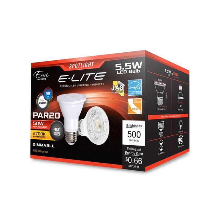 Regular price $11.98With shatter resistance, true color perception and competitive brightness, the Euri Lighting EP20-4020CECW-2 creates a spotlight perfect for task lighting applications. Available as a twin pack, these flood bulbs live twice as long and use 89% less energy than the traditional incandescent bulb. Suitable for a vast majority of environments, the EP20-4020CECW-2, offered in Warm White (2700K), achieves a relaxing, welcoming atmosphere.