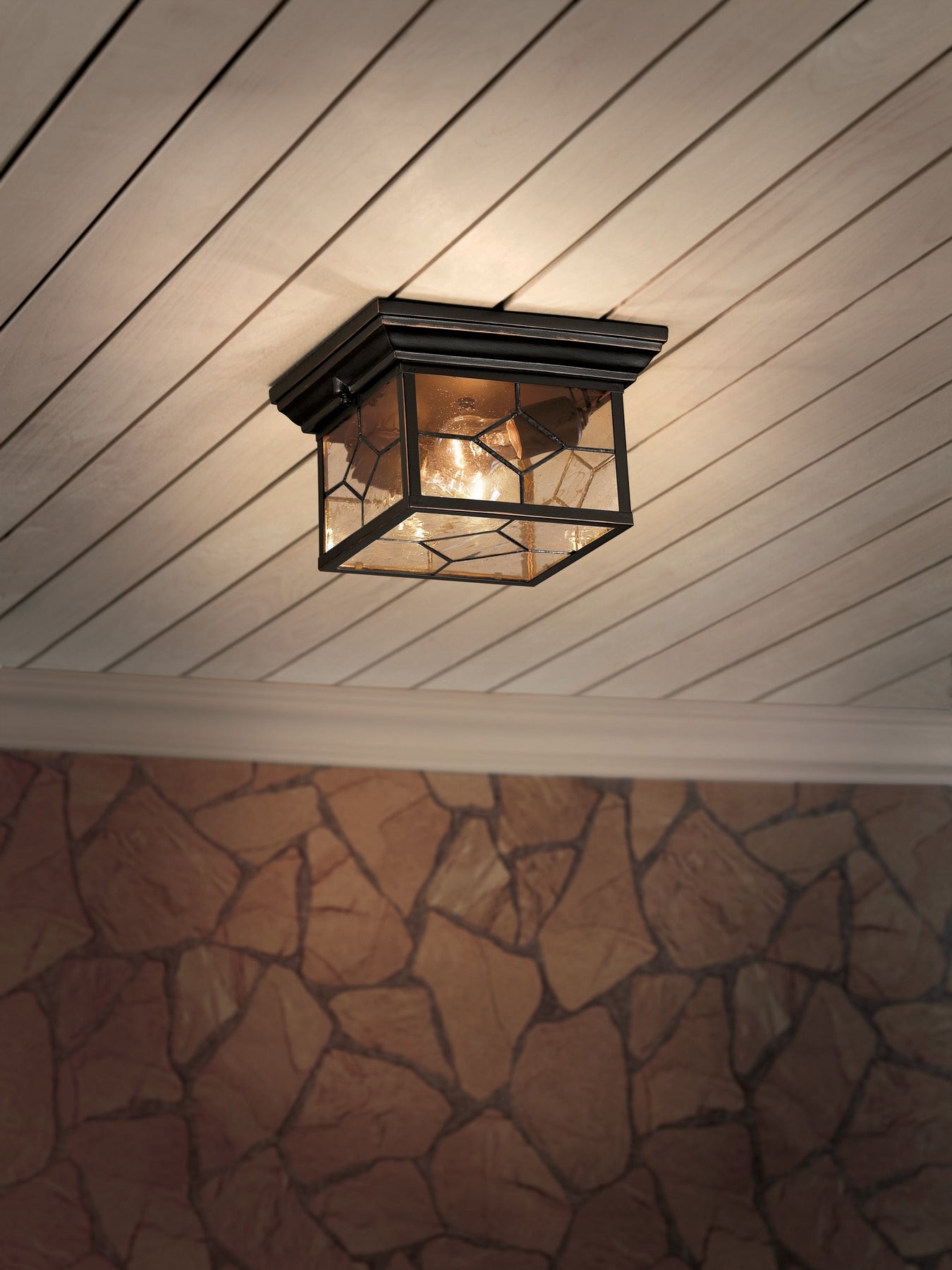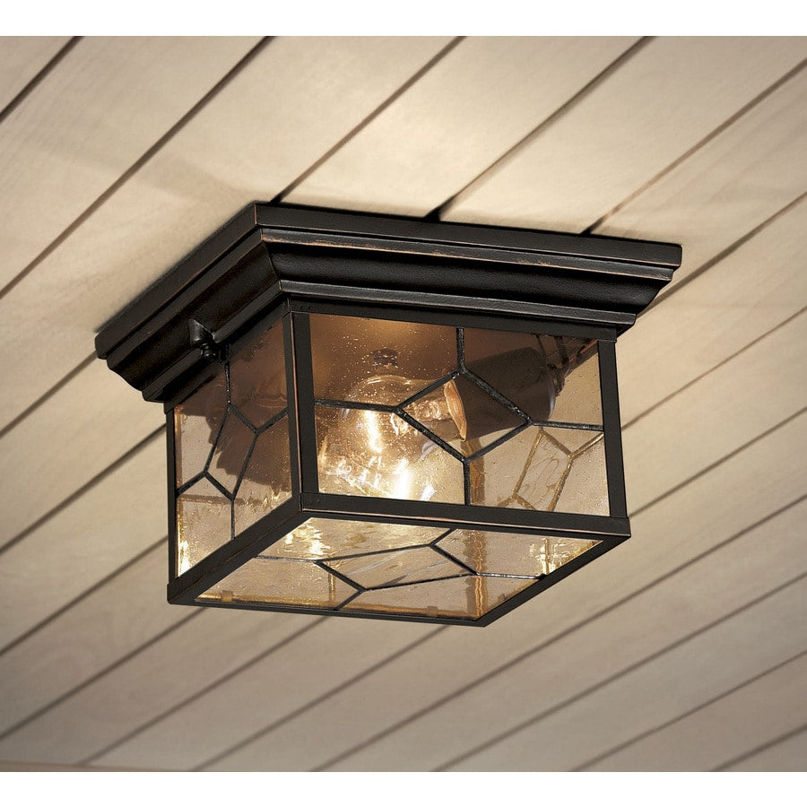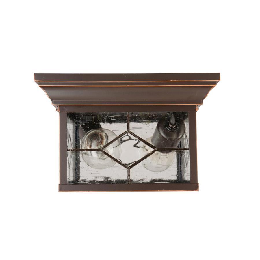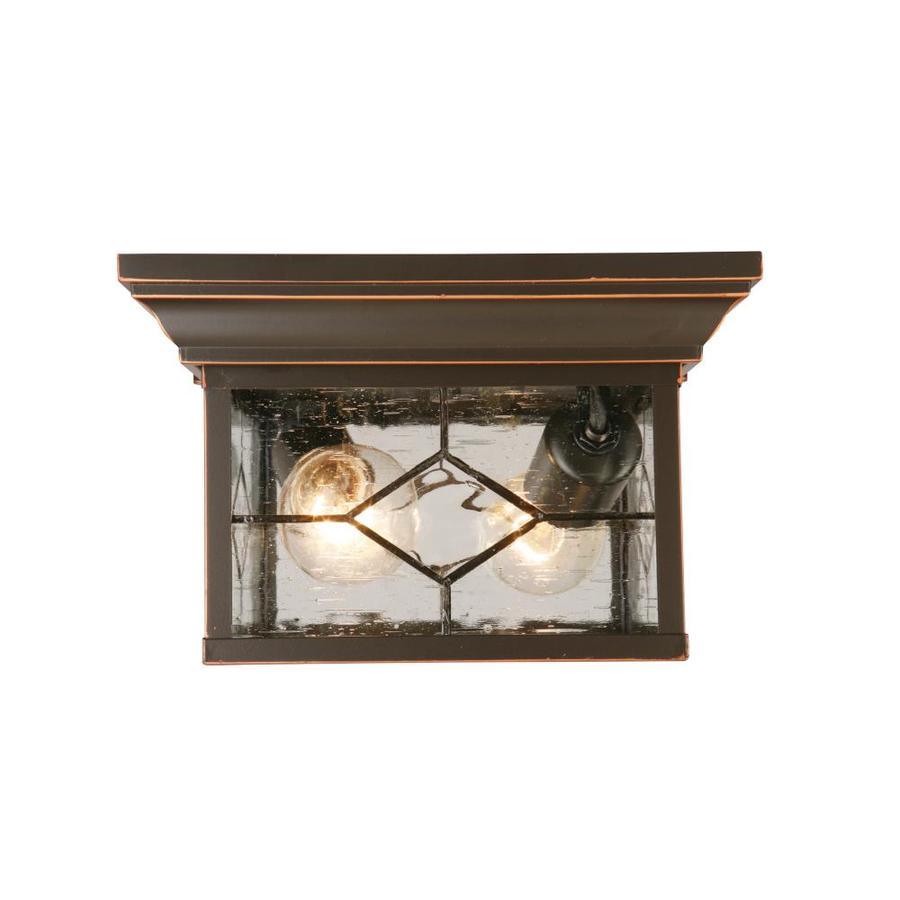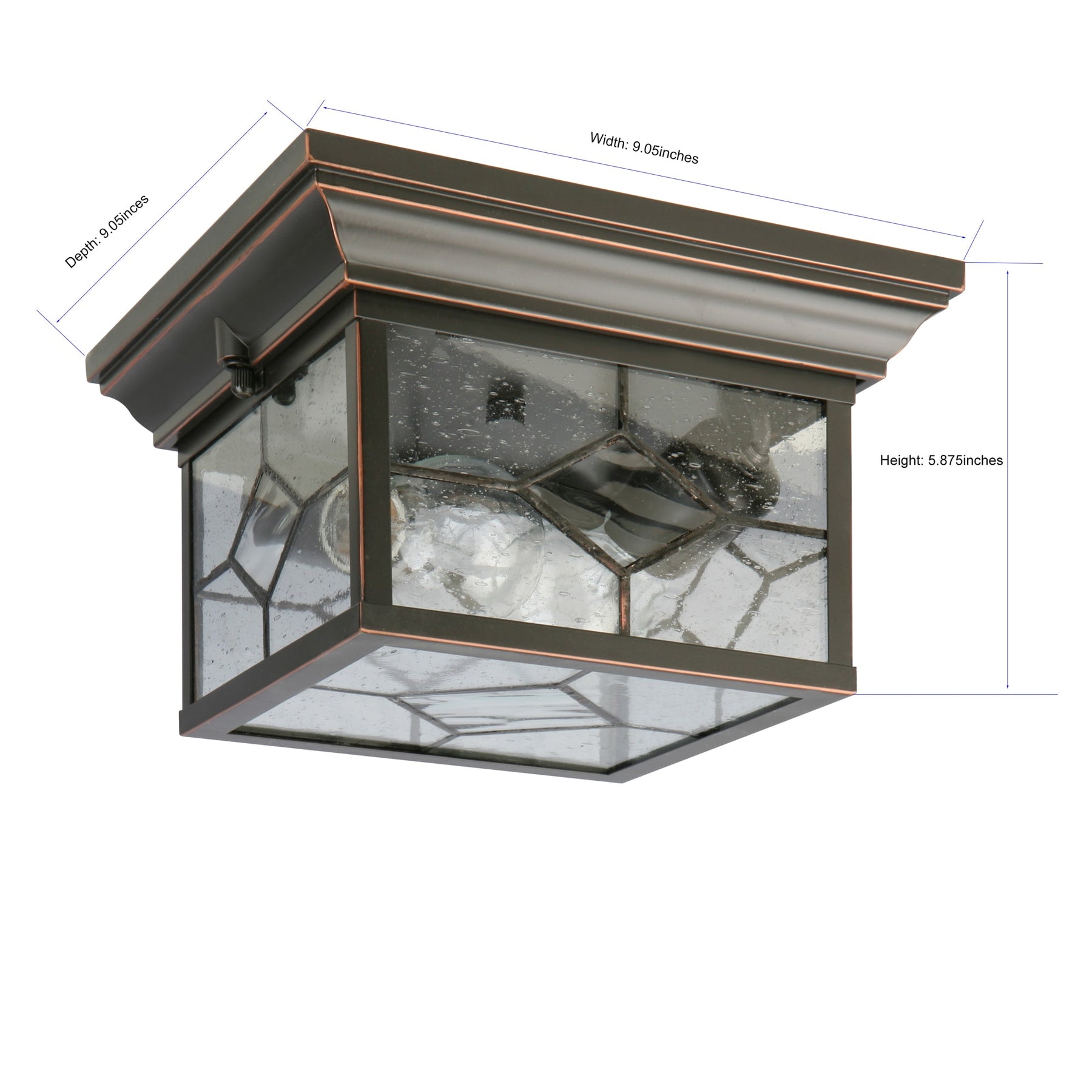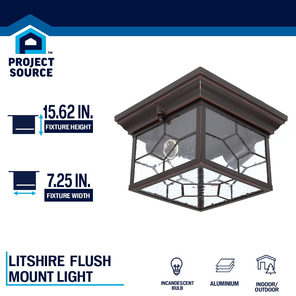 This Litshire flush-mount ceiling light features an oil-rubbed bronze finish with clear seeded and water glass for bright, elegant illumination. Built from durable aluminum and wet-rated for indoor or outdoor use, it installs flush to the ceiling for low-profile style at entries, porches, and covered patios.