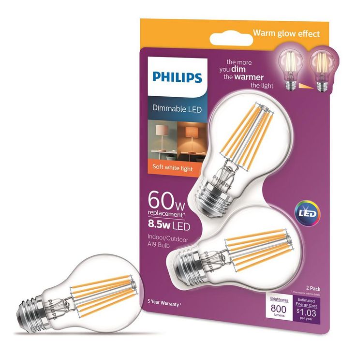 Philips 60-Watt Equivalent A19 Dimmable Warm White LED Light Bulb Glass with Warm Glow Effect (4-Pack)