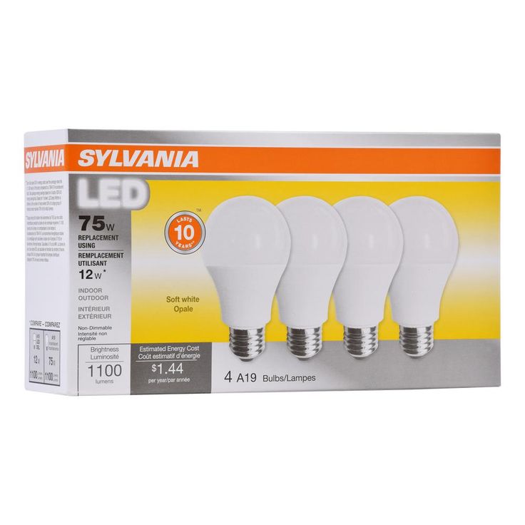 Regular price $21.99Light your residence or office space with this energy-efficient light bulb. Specifically designed to replace 75-Watt A19 incandescent bulbs, each of these powerful LED lights uses just 8.5-Watt. Even with this low-wattage, each lamp emits a bright 1100 Lumens. Save money from using this low-wattage, high-performing LED bulb. In comparison to a 60-Watt incandescent lamps 1200-hour lifespan, these A19 LED lamps can work for up to 11,000 hours. They are also cost-efficient, as each pack contains 4 bulbs, perfect for multiple room renovations. And unlike other light bulbs, Sylvanias LED lights do not overheat. Our LED lights are UV-, IR- and mercury-free. You can safely install them in wall washers and track heads. (not for use in fully enclosed fixtures) With these bulbs, you can be sure that what's inside your house is safe to use.