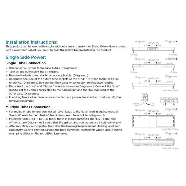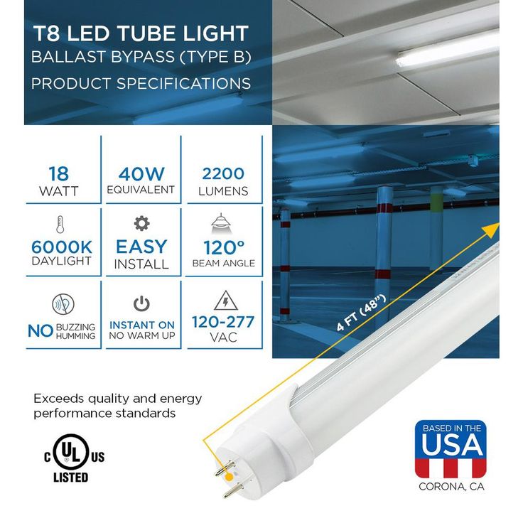 Your workspace deserves a high-quality lighting solution that will provide top-tier performance at an affordable price. This is exactly what you get with our LED T8 Light Tube. Its 6000K daylight brightness will illuminate any space for maximum clarity. This is perfect for garages, warehouses and other work spaces where optimal bright lighting is to your advantage. It is a 40-Watt equivalent fluorescent replacement. With that, you'll save money with increased energy efficiency standards. This all comes with easy installation and a simple ballast bypass that we provide detailed instructions for. Increase your lighting and efficiency standards with this UL-Listed. Single-end powered design plus step-by-step installation and ballast bypass instructions make for the easiest installation around. Plus, our team will support you in any step of the process if you run into any difficulty.
