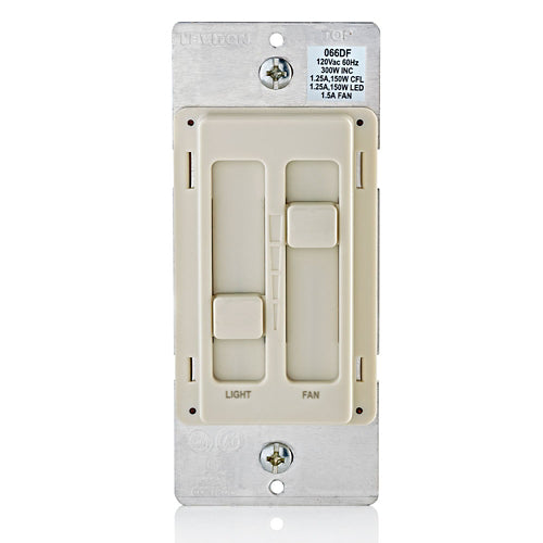 The Leviton SureSlide dual control combines a quiet 3-speed fan controller with a smooth slide dimmer for your ceiling light. Rated for 150W dimmable LED/CFL or 300W incandescent/halogen lighting and 1.5A fan loads at 120V, it offers separate sliders for precise comfort and ambiance.