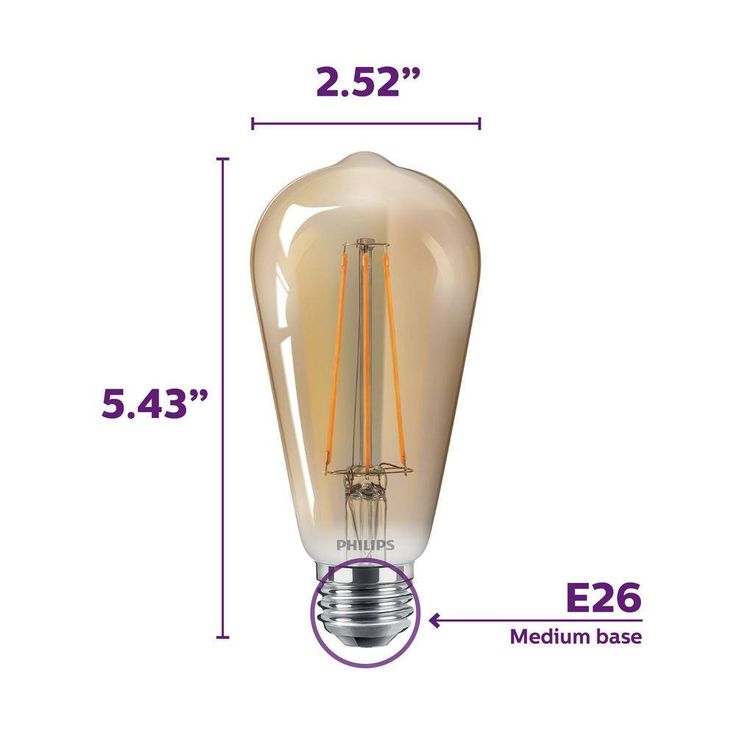 Introducing the new Philips Vintage LED light bulb family, a collection that is reminiscent of familiar incandescent bulbs from the recent past. Available in an array of giant shapes, candles and other familiar form factors, they provide a seamless fit across your space collectively. This 40-Watt equivalent glass bulb stands out when used as a statement piece, adding a sense of nostalgia to your interiors. The intricate LED filament emits a familiar orange amber glow all around through its crystal clear, fully dimmable glass bulb, perfect for mood setting and style creation inside and outside your home. With no visible flickering and an instant full level brightness when switched on, you will also enjoy soft and evenly distributed warm white light with that vintage charm of yesteryear across your spaces.