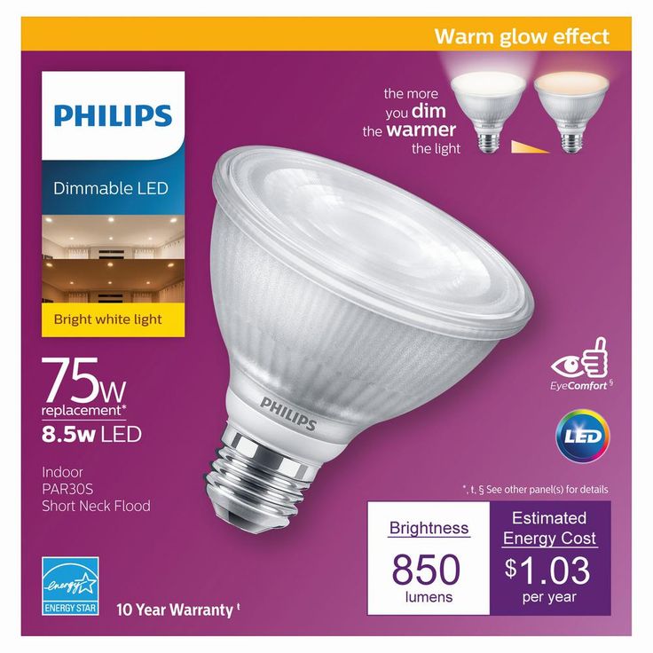 Philips Energy Saving LED 8.5-Watt PAR30S flood light bulb is ideal for use in kitchens, living rooms and dining rooms. It provides a wide beam of bright, white light, perfect for general room lighting. This medium base flood light replaces your current 75-Watt halogen PAR30S flood light.