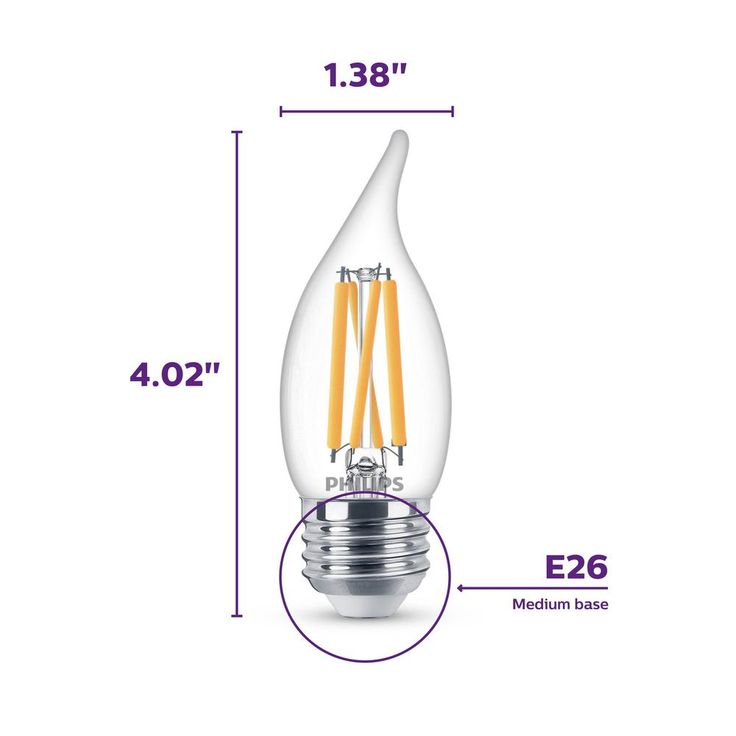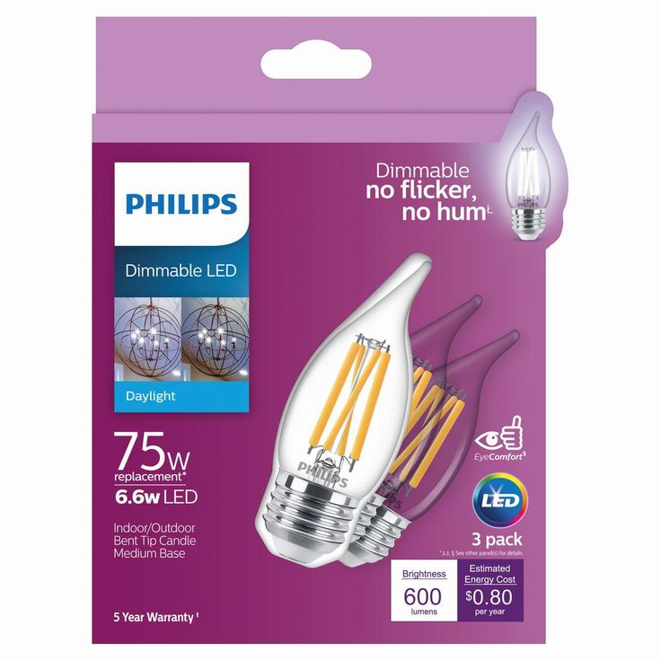 The look you love with the performance you expect. Philips 75-Watt Equivalent Dimmable Clear Glass LED BA11 light bulbs are a smart energy saving alternative to your standard incandescent with a classic glass design. This Philips 6.6-Watt LED BA11 candle light bulb in natural daylight is the perfect replacement for anywhere traditional candle shaped bulbs with candelabra base are used, such as chandeliers, foyers, recessed coves and bedrooms. The classic glass design with exposed filament offers a nostalgic, warm appearance.