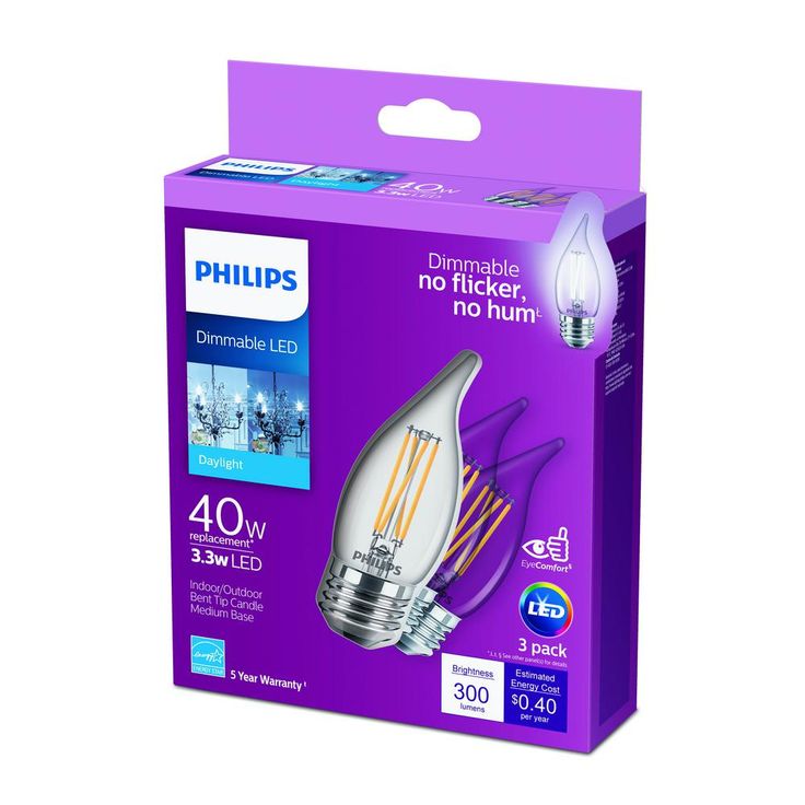 The look you love with the performance you expect. Philips 40-Watt Equivalent Dimmable Clear Glass LED BA11 light bulbs are a smart energy saving alternative to your standard incandescent with a classic glass design. This Philips 4.5-Watt LED B11 candle light bulb in natural daylight is the perfect replacement for anywhere traditional candle shaped bulbs with candelabra base are used, such as chandeliers, foyers, recessed coves and bedrooms. The classic glass design with exposed filament offers a daylight appearance.