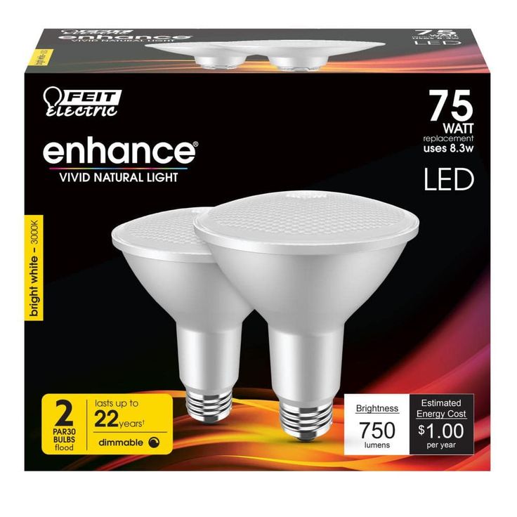 The Feit Electric Enhance LED PAR30 reflector light features our highest quality energy efficient light. It has a high (CRI) of 90+ so colors appear more vivid and natural. Rated to last an average life of 25,000-hour, the bulb lasts up to 25 times longer than the equivalent incandescent light and is much more energy efficient saving you time and money. The high performance versatile PAR30 LED bright white light is fully dimmable and suitable for indoor and outdoor use making it an ideal replacement light for outdoor security lighting, recess and track lighting applications.