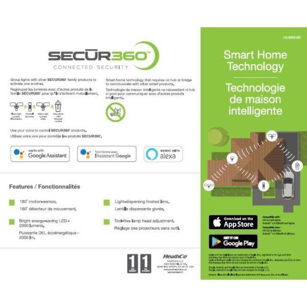 Regular price $89.00Secur360 Outdoor Wi-Fi Connected Motion LED Lighting provides safety and Security to the home. Voice activated control with Google Assistant or Alexa systems are some of the smart controls Secur360 products offer for convenience. Secur360 smart lighting requires no bridge or hub while offering one App control for all family products in a quick - easy setup manner.